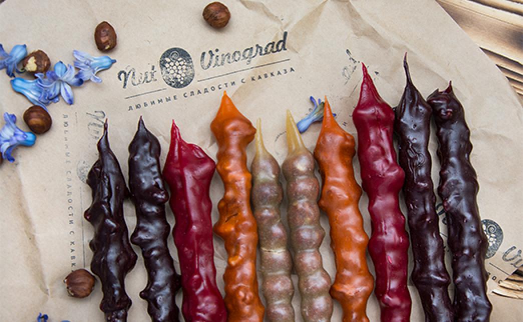 - Оригинальный вкус. Чурчхела может порадовать любого гурмана. Существует масса рецептов приготовления – отличаются условия готовки, пропорции продуктов, виды начинки. Это позволит вам долго открывать новые вкусы и увлечённо искать среди них любимый.
