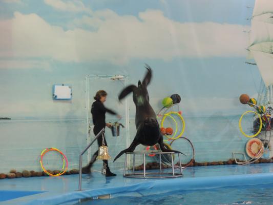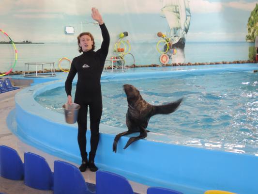 Отдельное огромное спасибо артистам и тренерам дельфинария! Это такое шоу! Просто в голове не укладывается, как такие неуклюжие на вид животные могут исполнять такие номера? А как возможно их этому научить? Браво!
