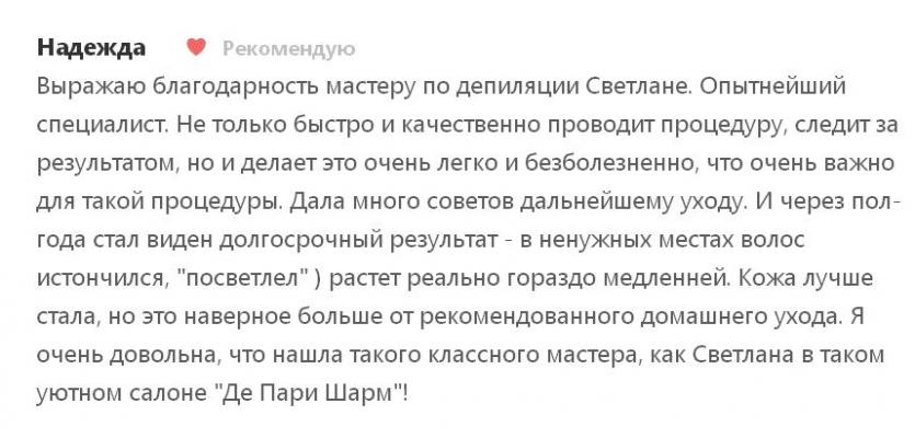 - Промокод дает право на скидку до 58% на женскую депиляцию воском, шугаринг и комплексы в салоне красоты "Де Пари Шарм"