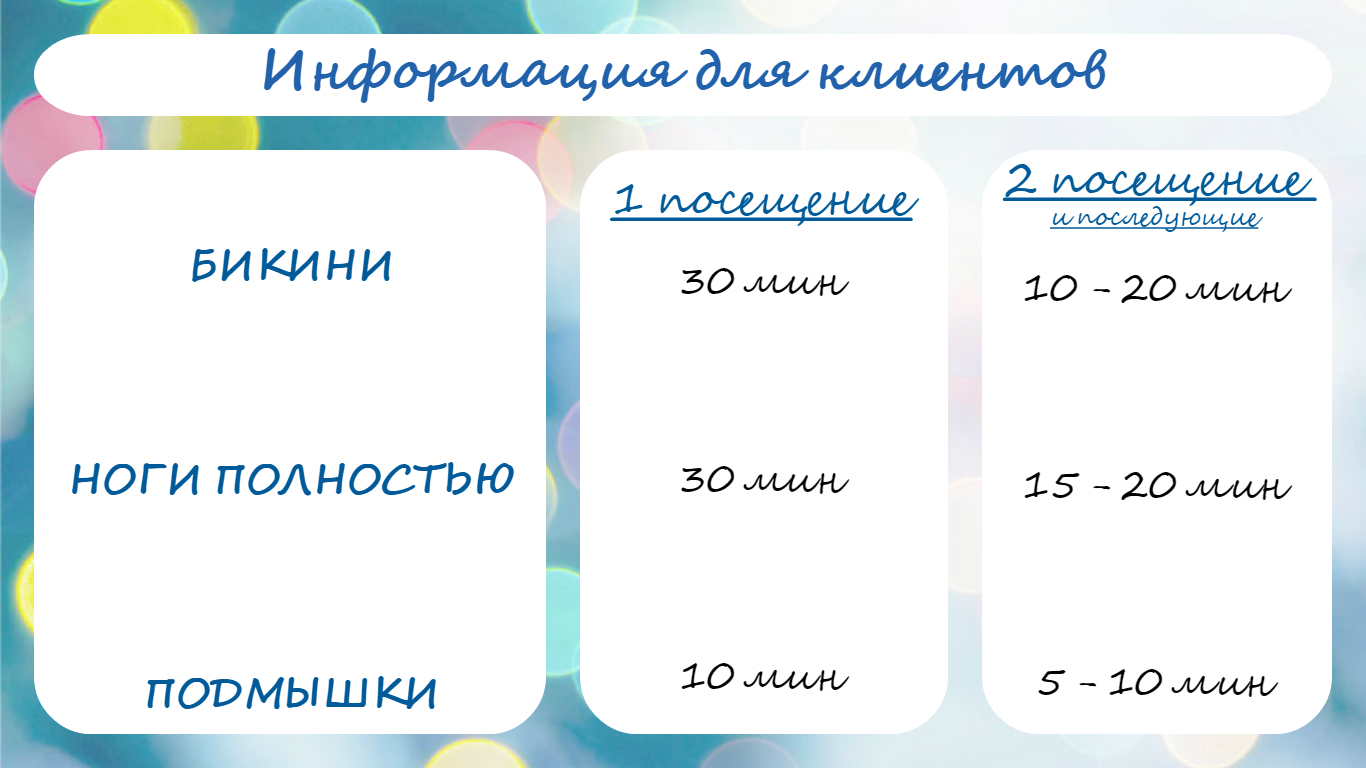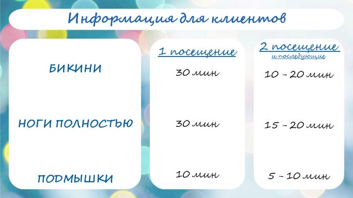 - "+" профессиональная и правильная техника удаления волос, которая исключает "врастание волос"