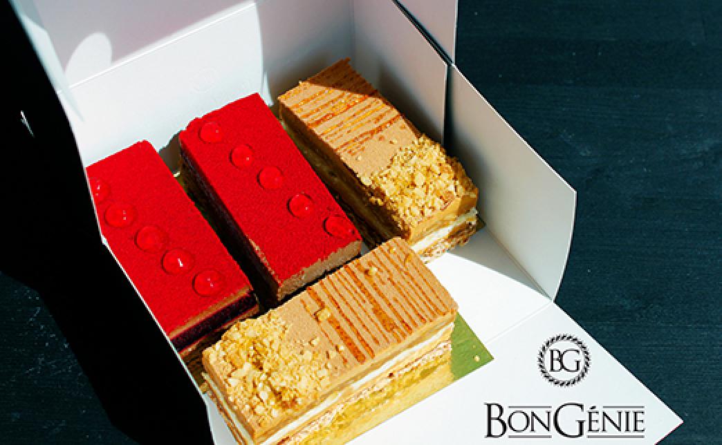 - Промокод дает право на скидку 50% на сет из пирожных от бутика десертов "BonGenie".