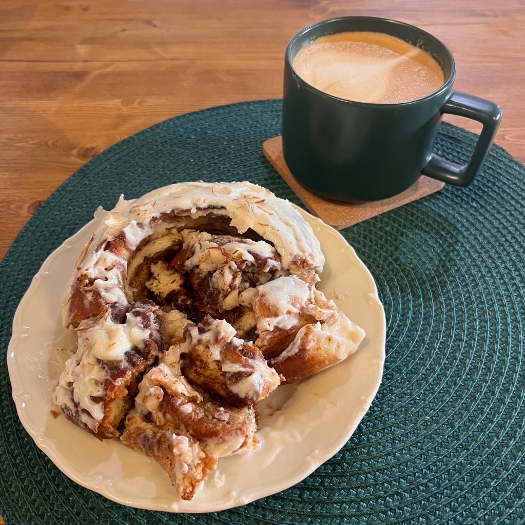 - синнабон (250 г): булочка с корицей, сахарный сироп, крем из сметаны и рикотты