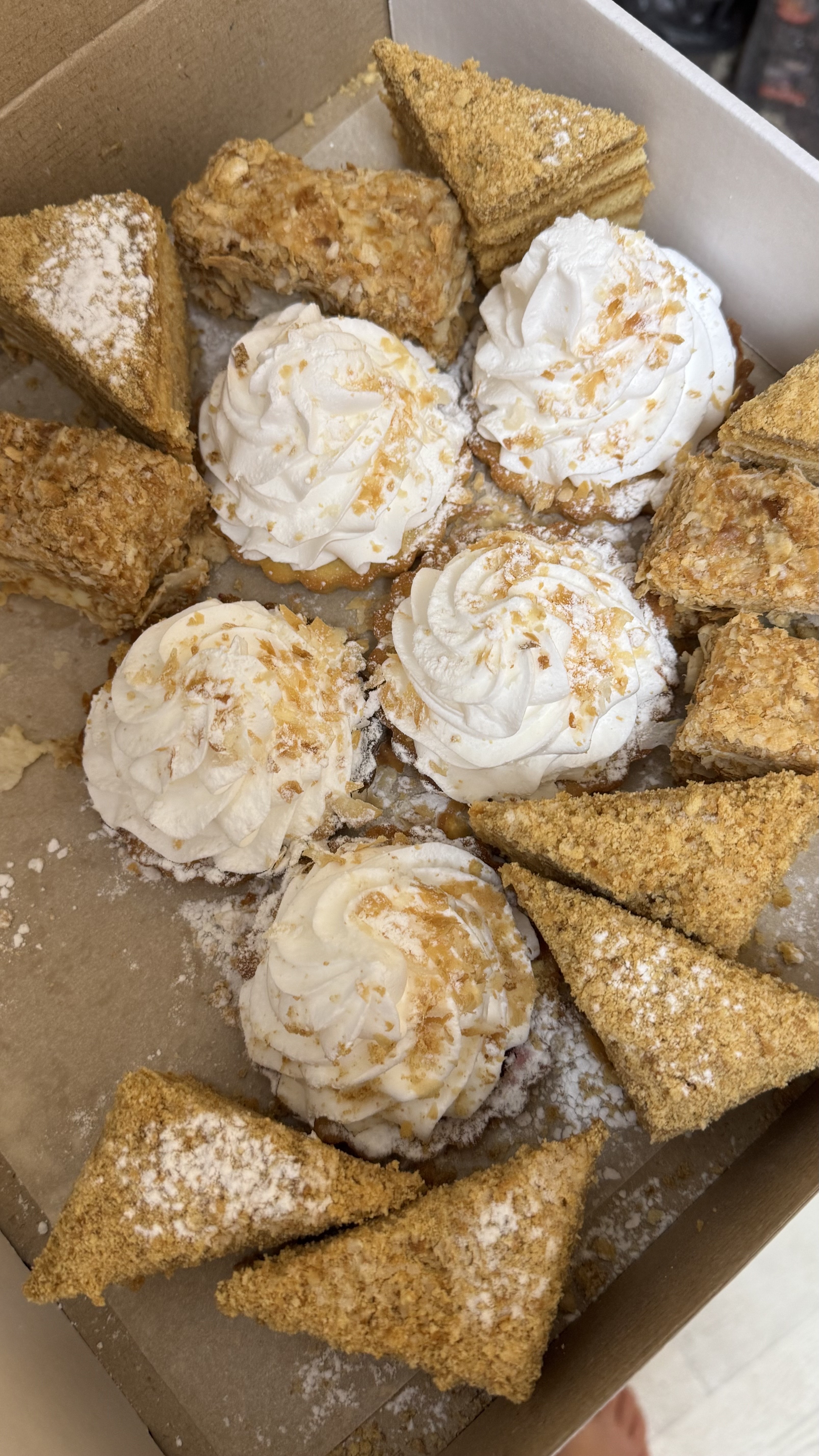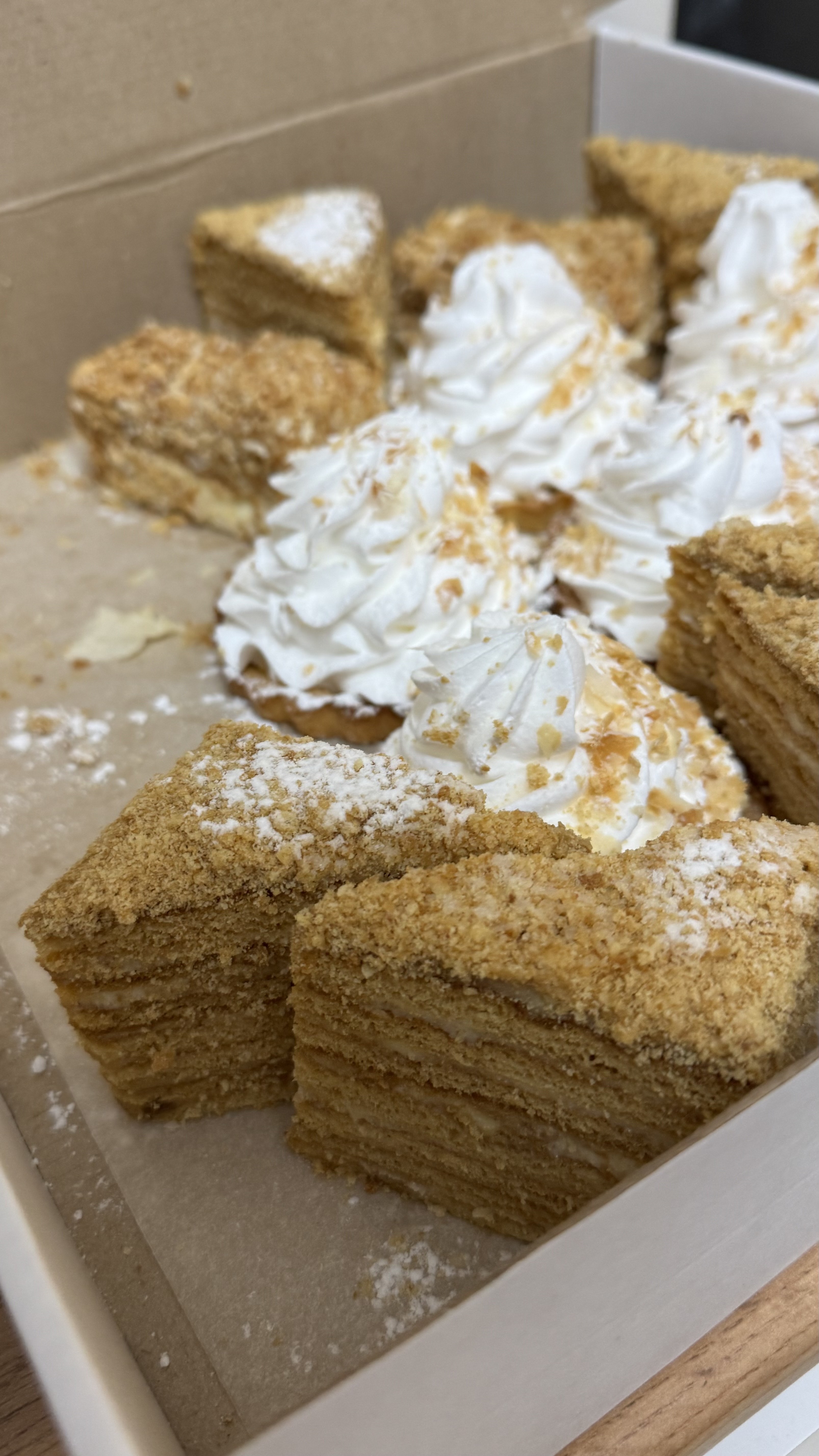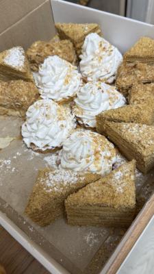 Состав набора: - десерт "Наполеон" (1000 г) - десерт "Медовик" (1000 г)