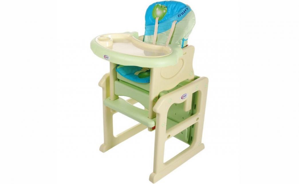 Совмещает в себе стульчик для кормления и столик с креслом. После окончания трапезы стульчик используется для рисования и других видов детского досуга. Спинку и близость подноса можно регулировать.