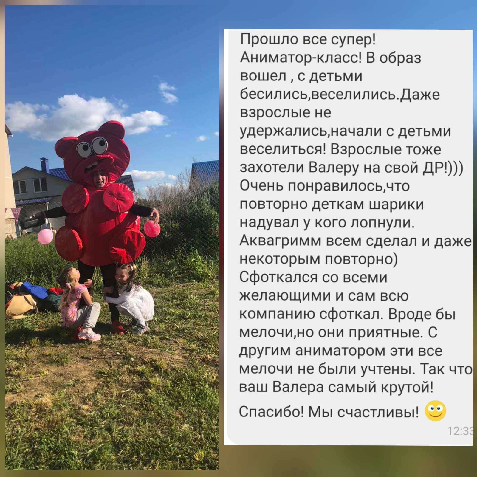 - фото на память с аниматором