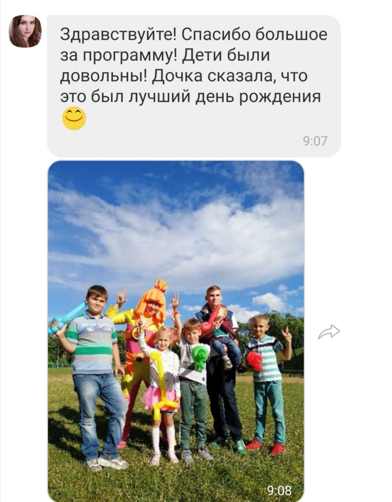 - шарик-фигурка каждому ребёнку (до 12 чел) в подарок (меч, пистолет, собачка, цветок, корона, жираф и т.д.)