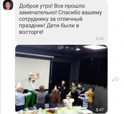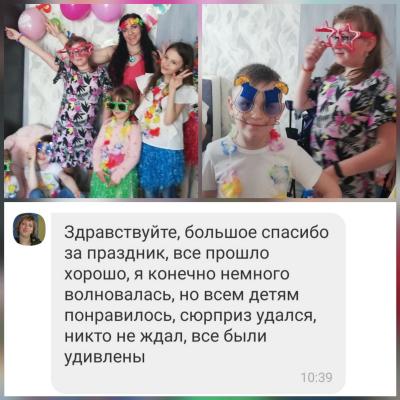 Программа разнообразная, для детей любого возраста (у нас были детки от 1 годика до 10 лет), много конкурсов, заданий, танцев, подарков. Не усидели даже взрослые!