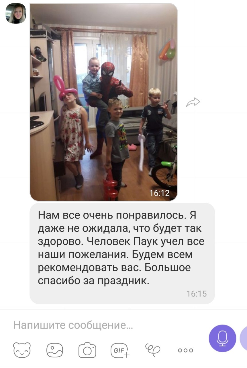 Человек-паук - супер!!! Дети и взрослые просто в восторге: знает подход к деткам, все без заминок и очень живо, весело! Будем к вам обращаться ❤️❤️❤️🎂🕷🕸
