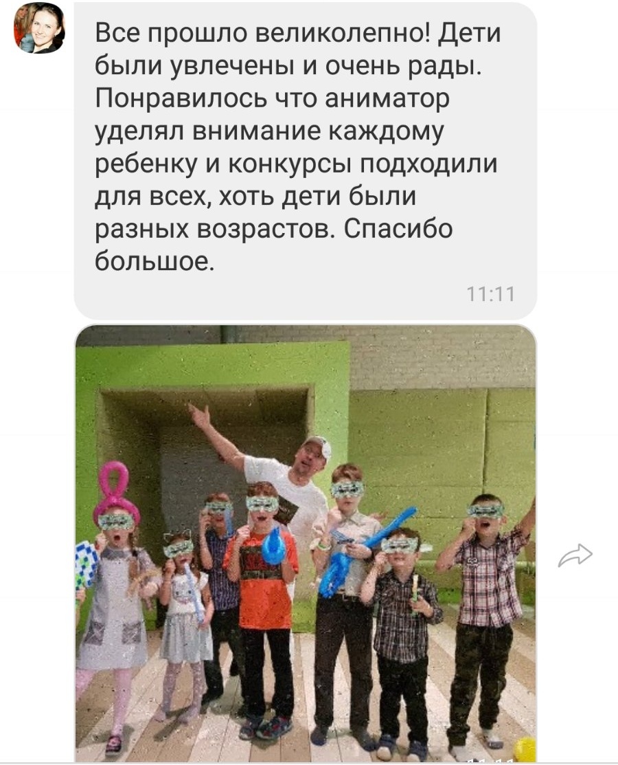 Спасибо, Огромное, аниматору Симке! Дети в Восторге и родители то же :)))) Праздник на Ура! Зарядились улыбками и отличным настроением! Всем рекомендуем!