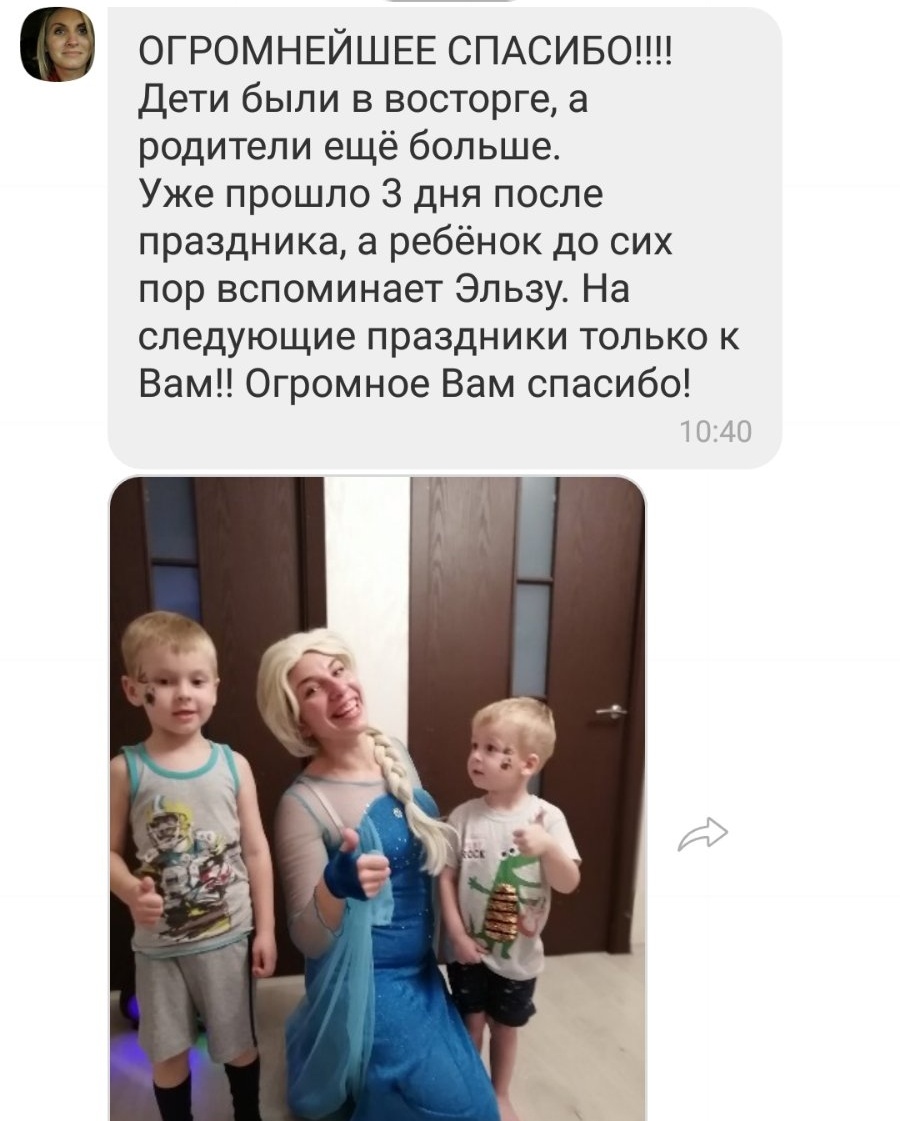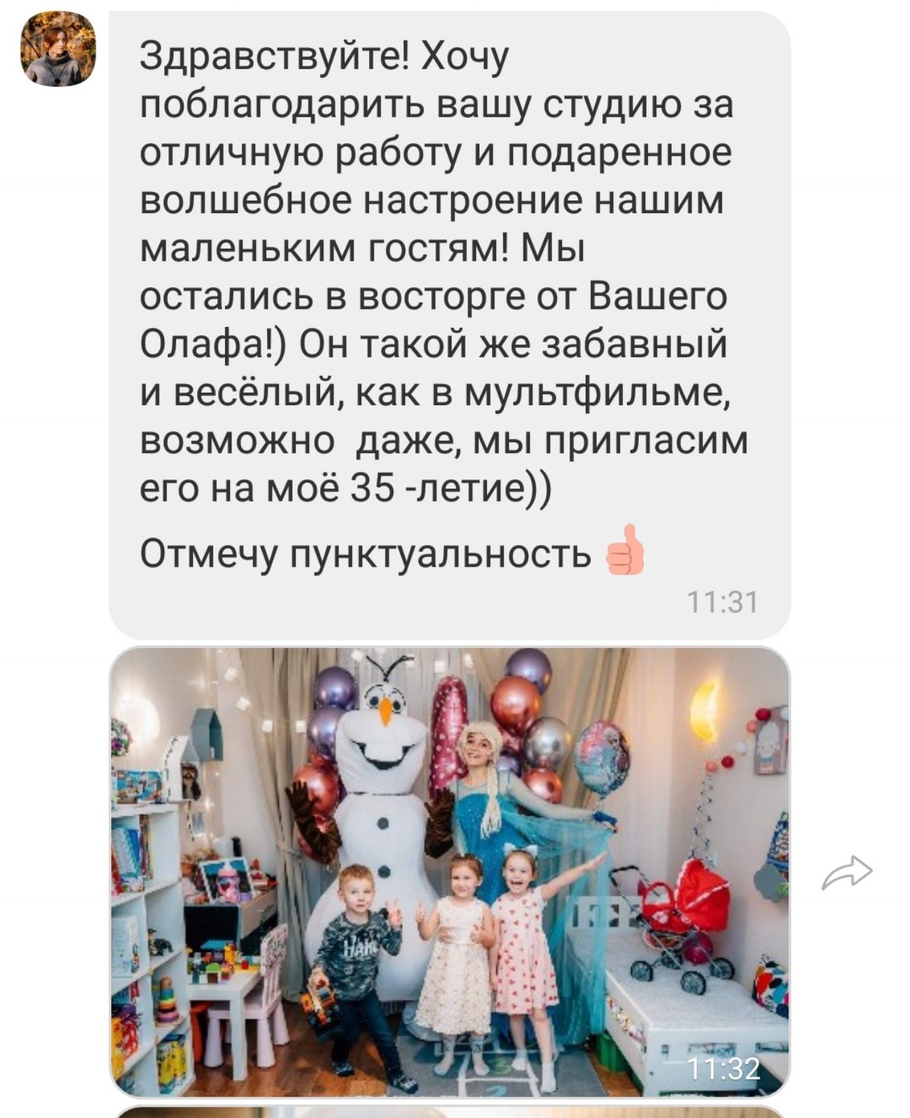 Эльза,просто выше всех похвал!!!! Спасибо огромное за такой замечательный праздник!!! Все были в восторге,что дети что взрослые)))) Всех благ вам и здоровья