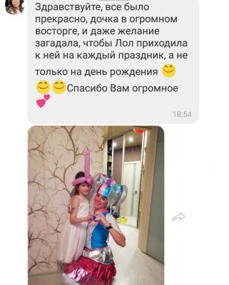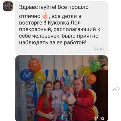 Все очень понравилось. Заказали лол.  дети были в восторге!!! Спасибо огромное за прекрасный праздник!!!