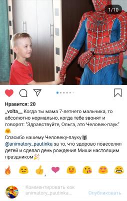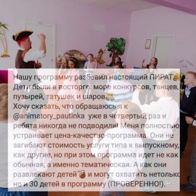 - Описание программ, фото, видео и отзывы о наших праздниках можно посмотреть у нас в соцсетях и на сайте pautinka.by, а так же на наших страницах ВКонтакте и Instagram!