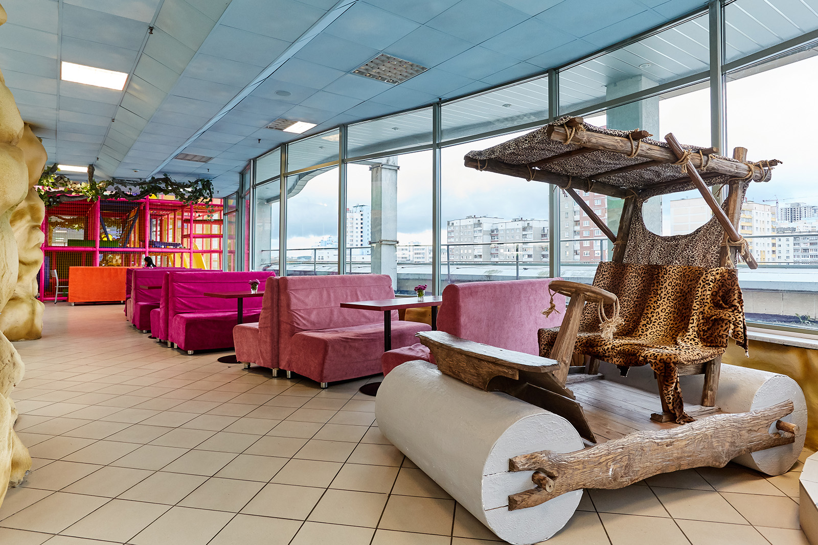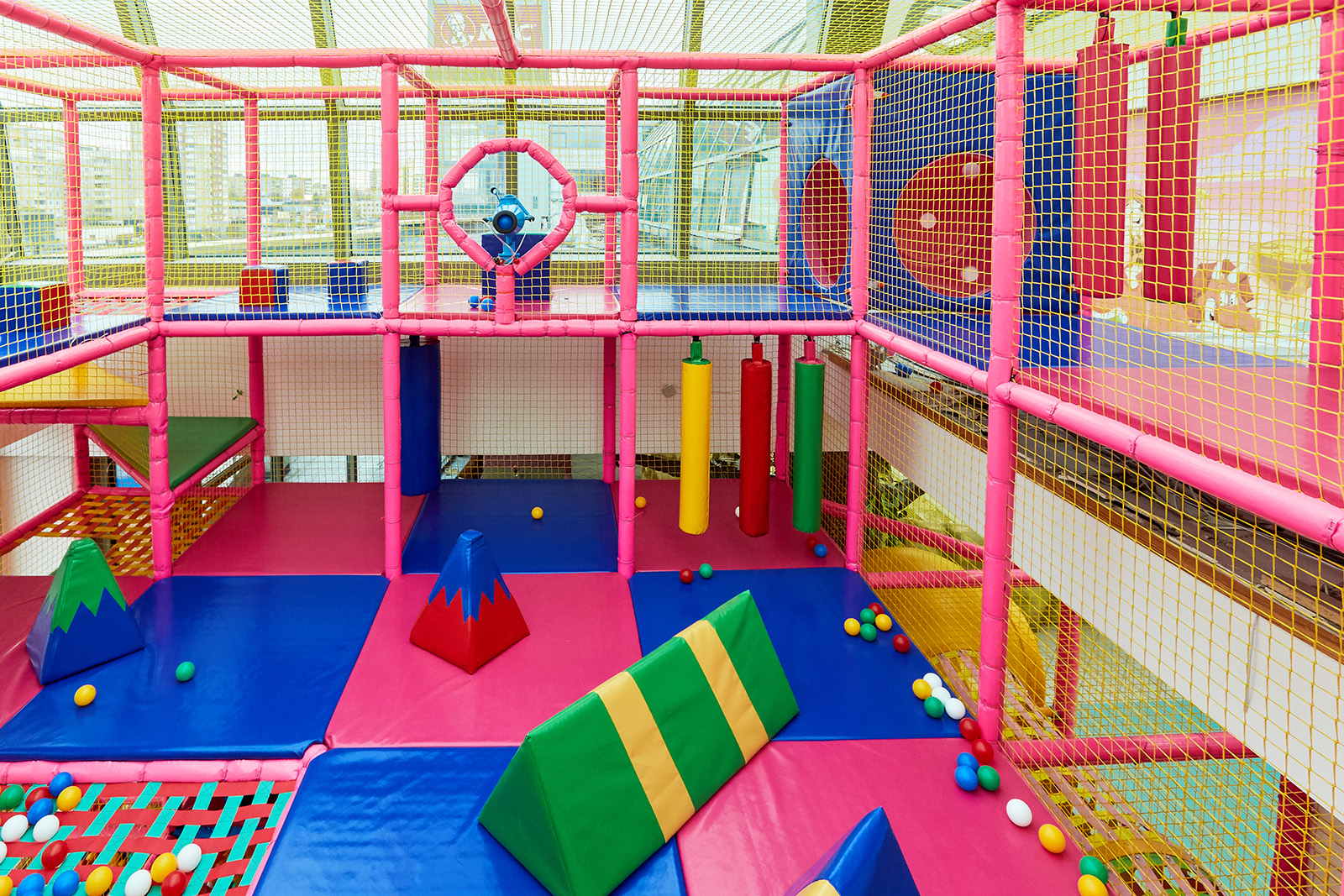 - мягкую игровую зону с батутом, горками, каруселями и сухим бассейном;