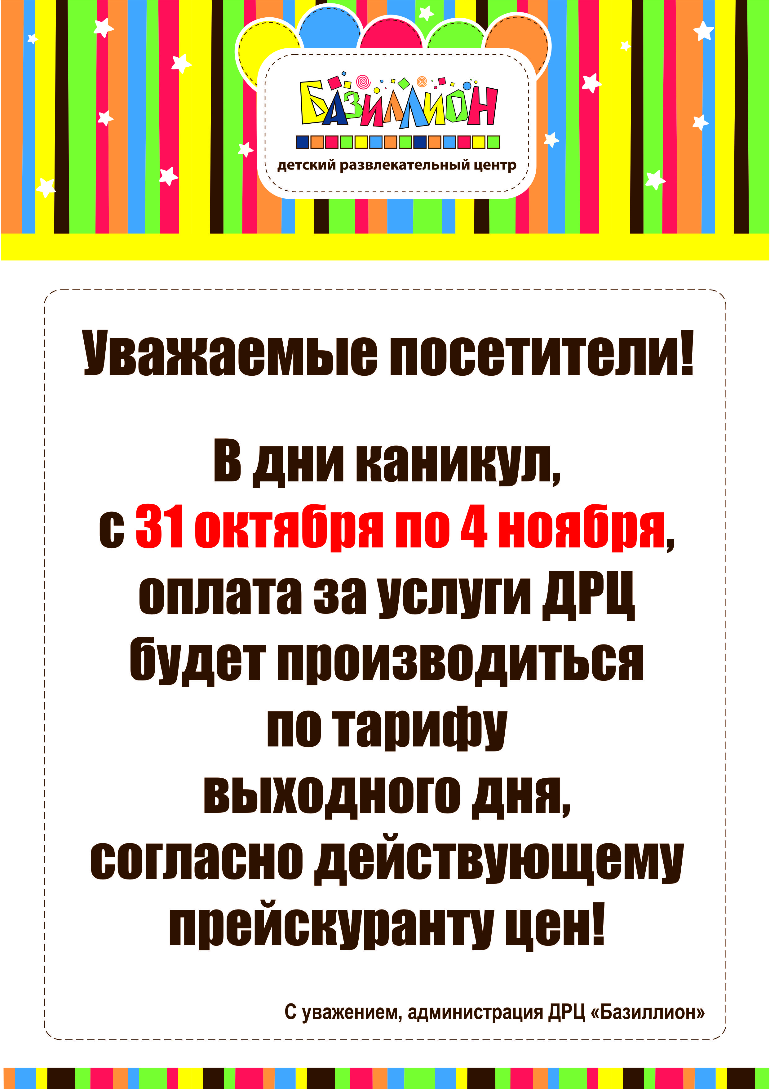 С уважением, администрация ДРЦ "Базиллион",
