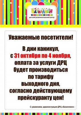 Информируем Вас, что с 31 октября по 4 ноября коды действовать не будут!