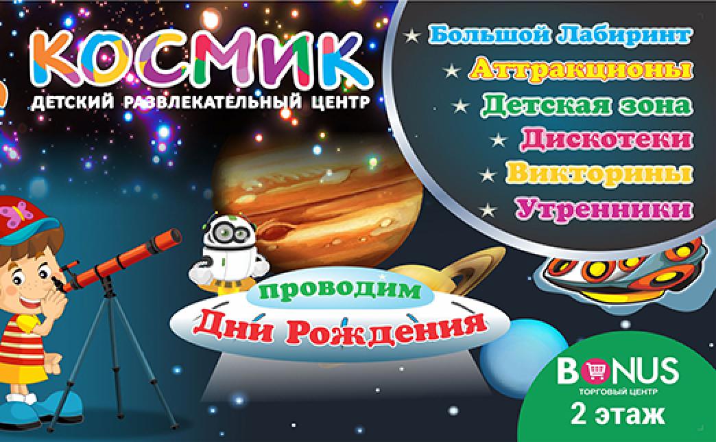 Детский развлекательный центр "Космик" в ТЦ "Бонус" за 3 руб.