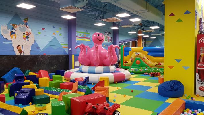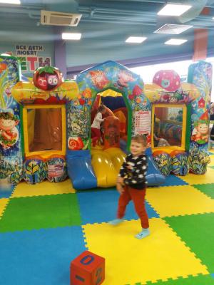 посетили данный развлекательный цент и нам очень понравился! места очень много,есть где побегать. и самое главное нет конкретного разделения на зоны для малышей и детей постарше т к у нас 2 разновозрастных ребенка,могли играть вместе. есть просто отдельная зона для малышей с бассейном из шариков,стульями-столами и деревянными развивающими игрушками. есть огромная доска для рисования мелом. И по цене отлично,сколько поиграл,столько и заплатил. Еще деток фоткают и делают фото с магнитиком или просто фото