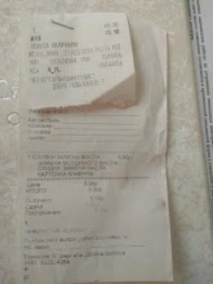 Нашел чек, который напомнил о данной "организации" и все-таки решил написать отзыв. 23.03.18 посетил данное ЗАВИДЕНИЕ с целью заменить масло и масленый фильтр. При подключении аппарата для забора масла, работник мало того, что не смог самостоятельно отключить шланг с подачей воздуха от подъёмника, так он еще при подключении шланга к аппарату не знал куда его включить. Коллега ему помог. После, работник начал искать место, где стоит масленый фильтр, я ему, а этом помог. Прошло мин 7 как выбирали, каким же диаметром трубки откачивать масло, после почему-то масло не откачивалось, но коллега сообразил и открыл крышку залива масла. Фильтр масленый предложили подрезать т.к. посадочный диаметр нового фильтра был меньше, хотя он должен защелкиваться... Это все ничего, совместными усилиями справились. Начался процесс заливки масла. Залив масло, работник данного заведения не смог правильно щупом замерять уровень масла, щуп был вставлен не до конца на см. 3-4 и при таком положении уровень масла был у верхней границы. Уехав за 200 км, я решил проверить уровень масла и обнаружил, что щуп установлен не до конца. В итоге был, перелив масла ну на грамм 250-350. По месту выкачали лишнее, а в данное заведение не советую обращаться. 1 звезда - это замного...