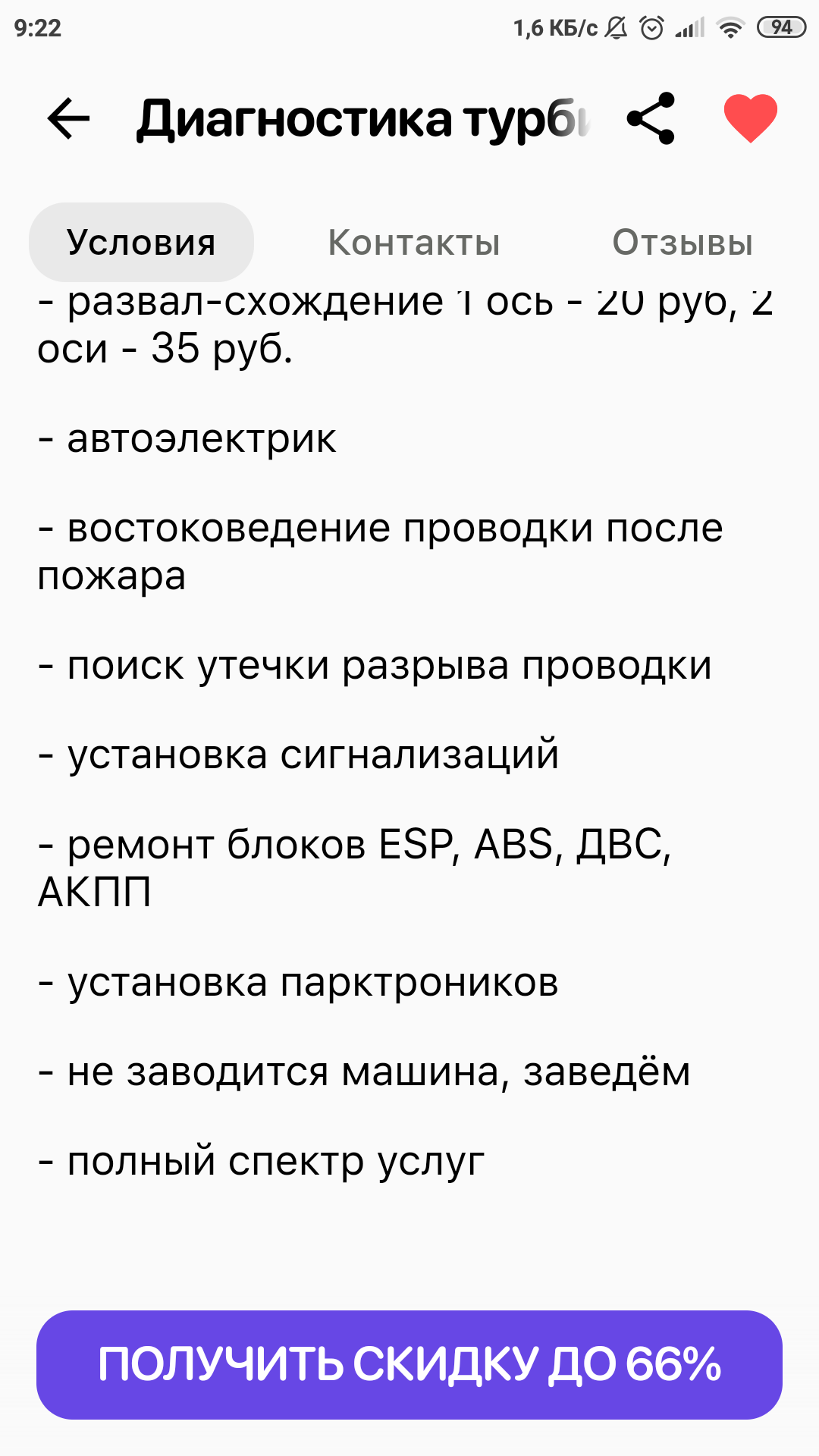 - Промокод дает право на скидку до 100% на диагностику турбины