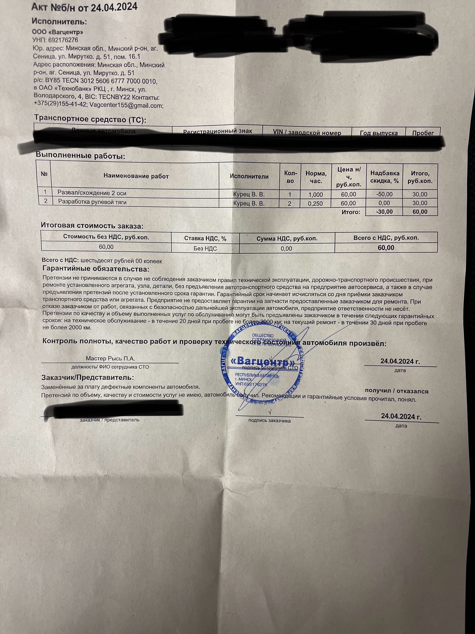 Наш мастер всегда уведомит Вас о дате и времени прохождения очередного ТО, или запланированного ремонта, и поинтересуется Вашим мнением об обслуживании в нашем автосервисе "Vagcenter". Мы заключаем договоры с юридическими лицами.