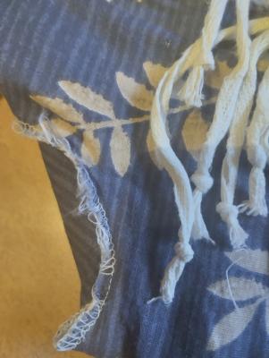Так сделаны все попоны ,из за того что они из натуральных материалов ( хлопок ) он имеет свойство осыпаться ,а чтобы края не сыпались можно завязать небольшие узелки . И экономия тут не при чем ,везде такие попоны ,их отшивают по одному образцу . Ну естественно если шьёте не на заказ