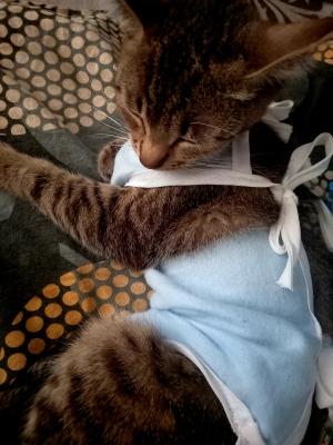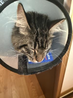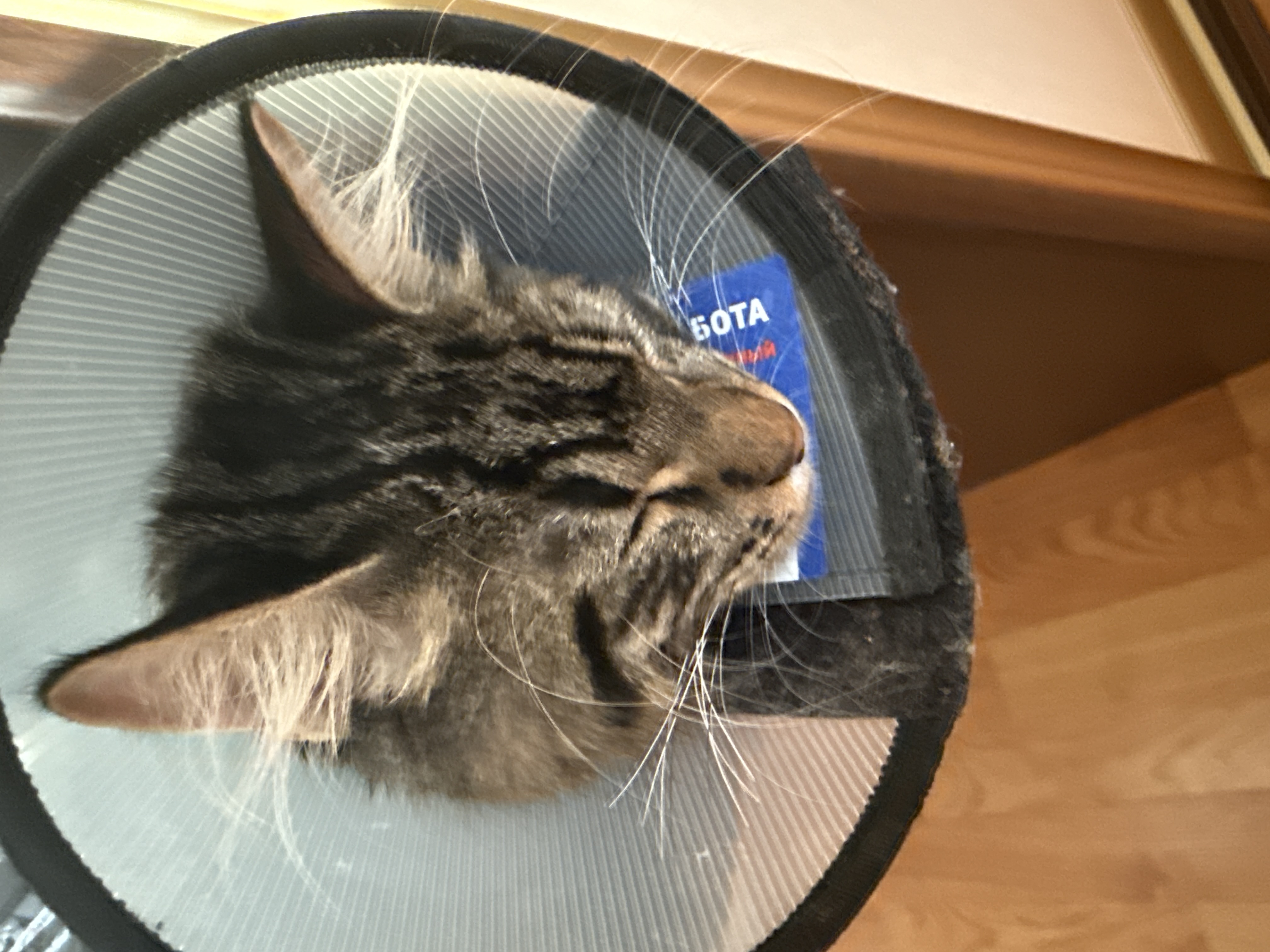 Относительно усов: в нашей практике были случаи, когда усы могли обломаться из-за воздействия послеоперационного воротника. Не волнуйтесь, усы вашего кота отрастут со временем.