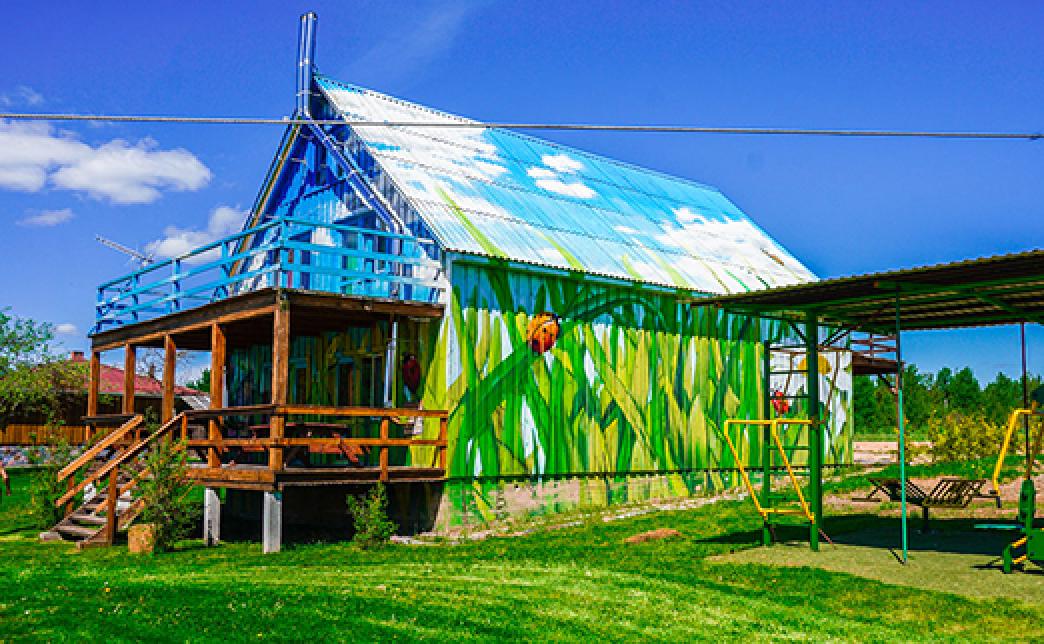 Деревянный домик, особенностью которого стала просторная терраса второго этажа. Кроме стандартного пакета удобств — необъятных кроватей, приветливой гостиной, аккуратных санузлов в этом домике вы получаете воздушность, чистый озёрный горизонт с деревянной террасы. Чем не порхание бабочки или не полет божьей коровки? Кроме того — дом разделён на две равноценные части так, что две компании гостей могут отдыхать, не мешая друг другу. Такой тип расселения даёт возможность проживания минимальному количеству гостей — 4 или 2, используя лишь часть дома без финансовых издержек.