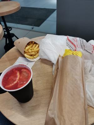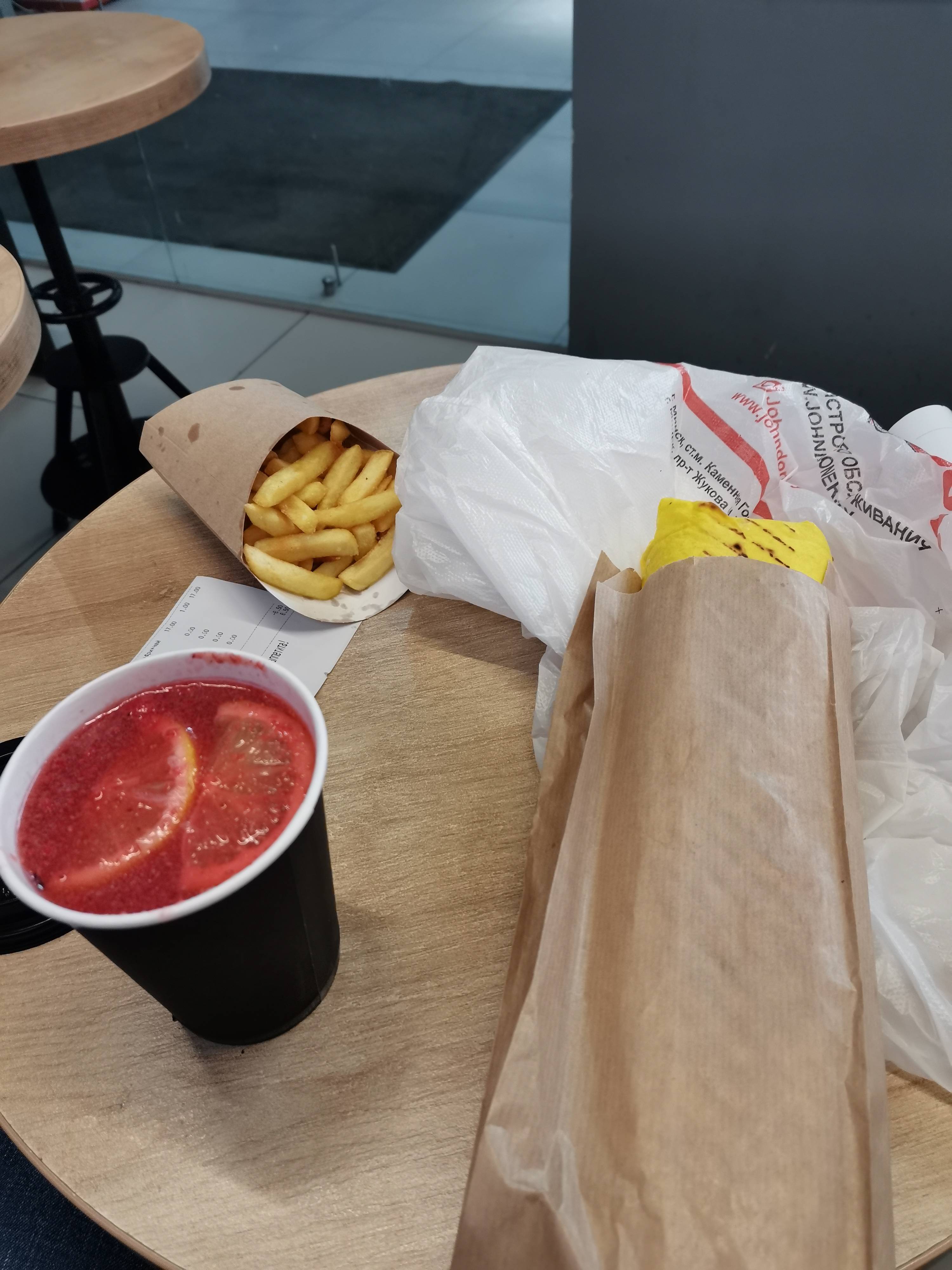 - комбо: XXXL донер с курицей (700 г) + большая картошка фри (150 г) + большой малиновый чай (350 мл): 10,75 р. 21,50 р.