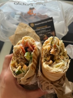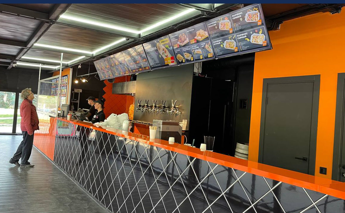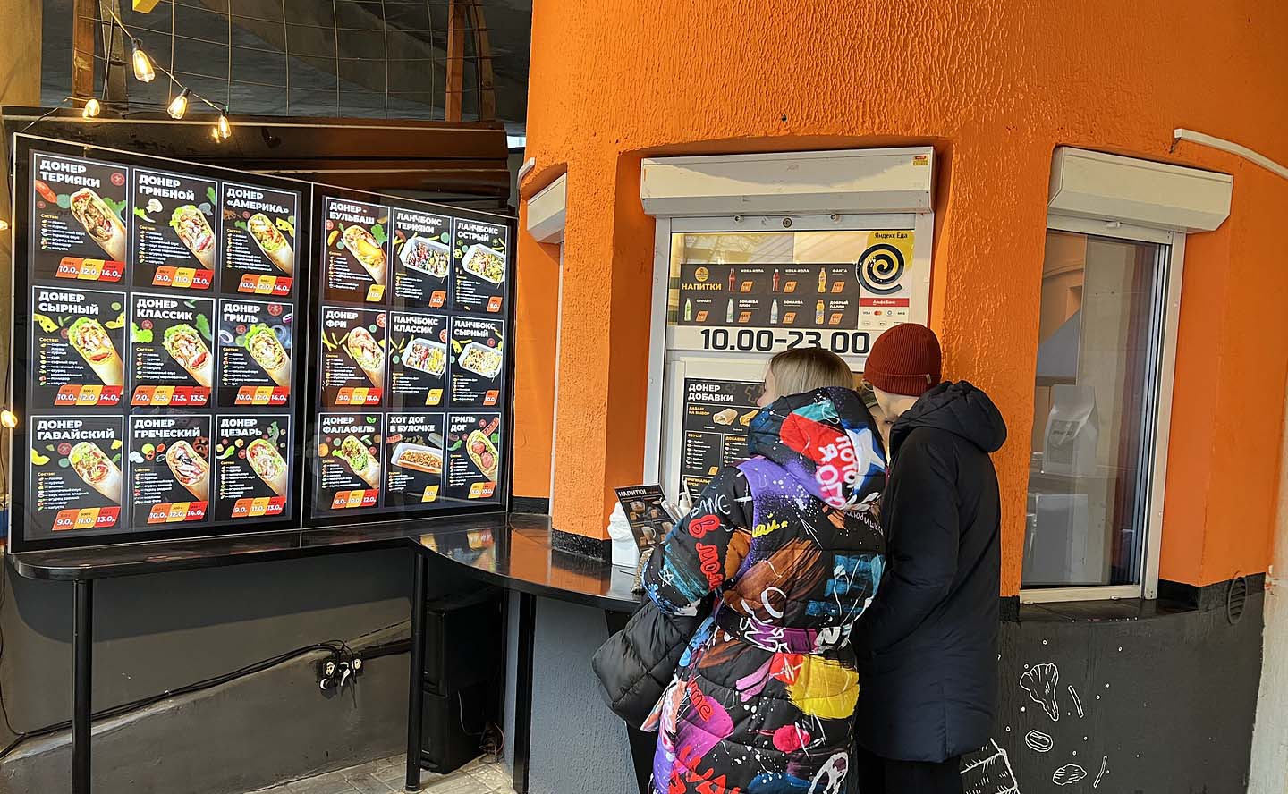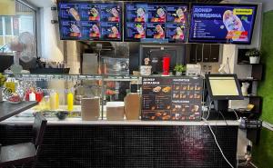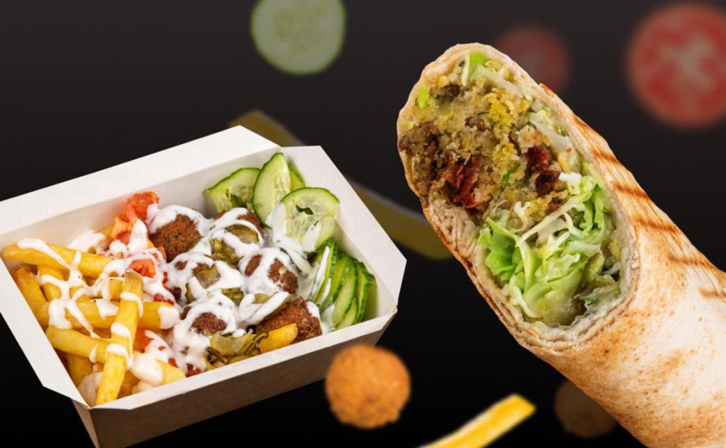 - донер "Фалафель": лаваш, фалафель, огурец маринованный, огурец свежий, томат, капуста, чесночный соус