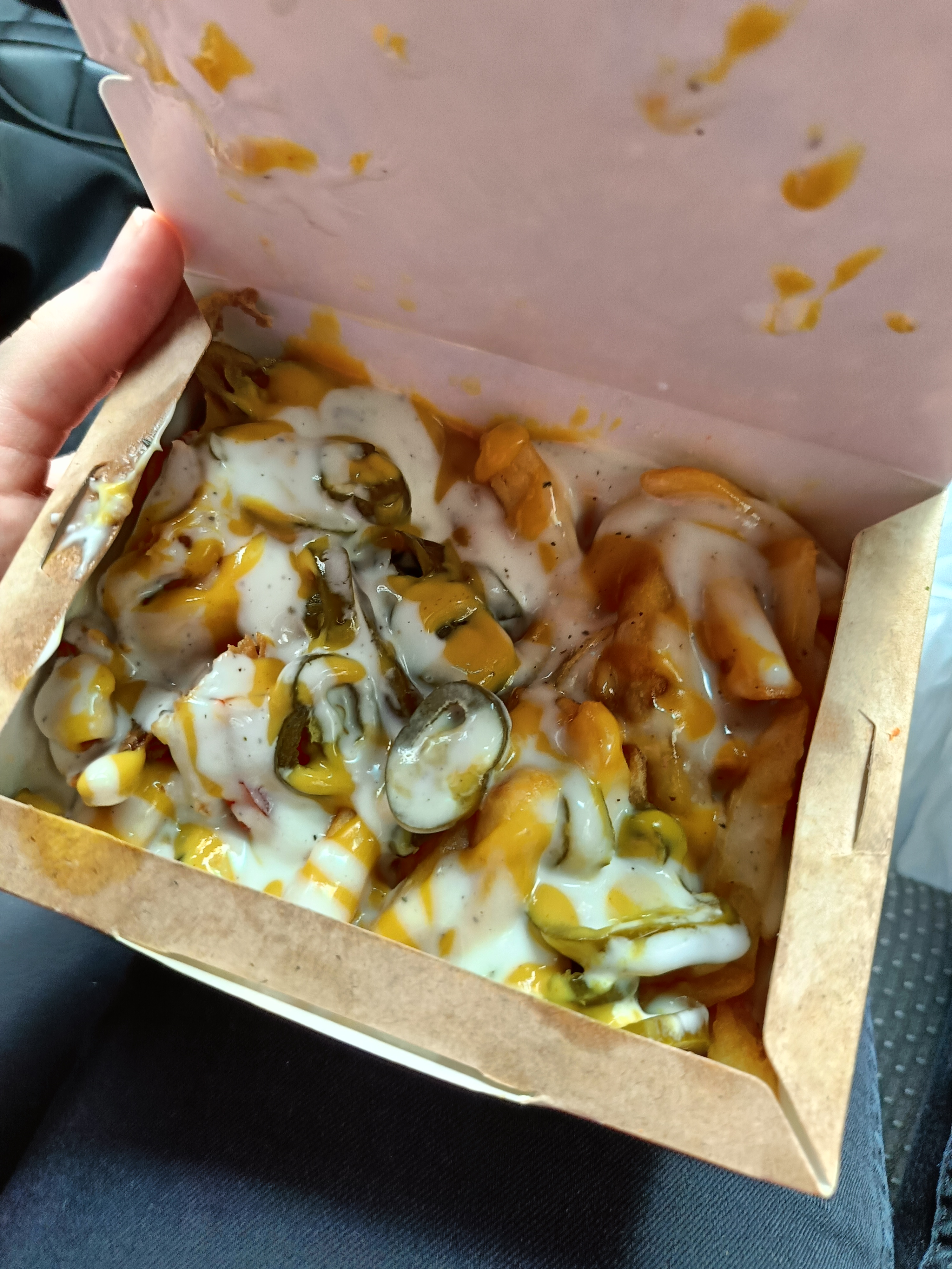 - ланч бокс "Вегетарианский": фалафель, огурец маринованный, огурец свежий, томат, картофель фри, чесночный соус
