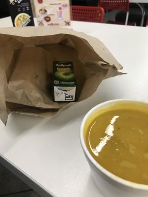 Очень-очень-очень-преочень соленое все! И суп, и шаурма. Шаурма сама жирная очень еще. Не скажу, что прям ужас, но мне не понравилось.