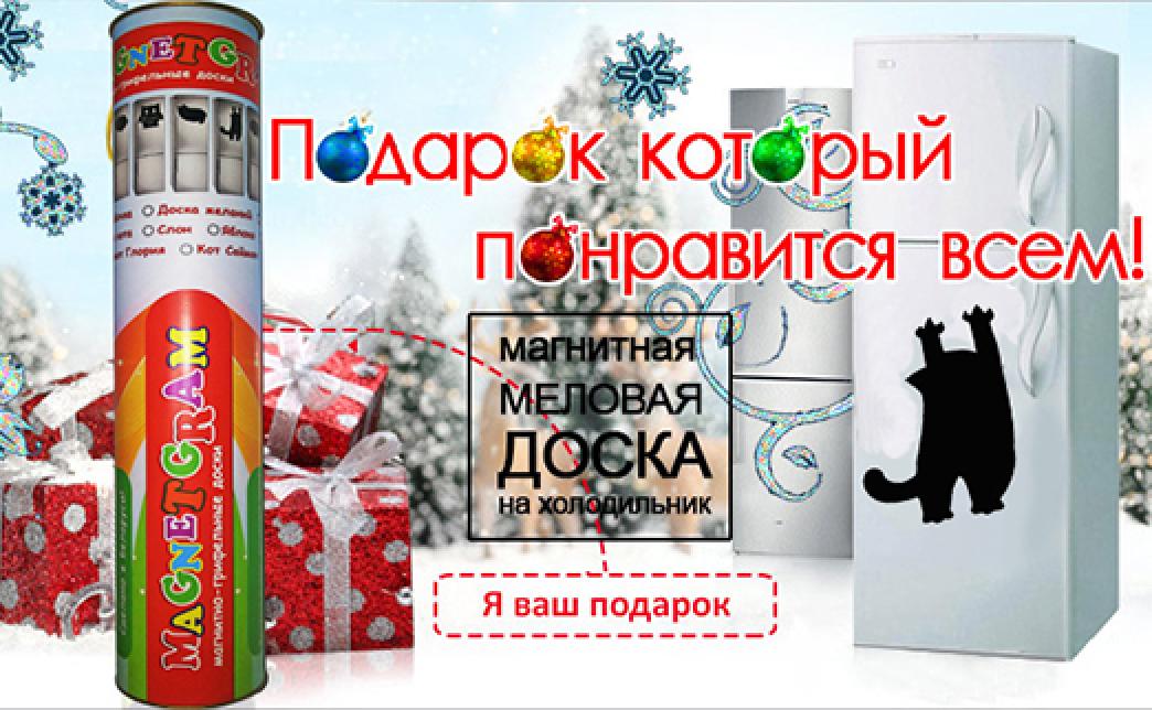 Магнитно-меловая доска - это специальное покрытие, которое примагничивается на холодильник, не оставляя на нем следов. На такой доске можно писать мелом, как на школьной, а потом просто стирать написанное влажной губкой. Кроме того, доску легко перенести на другой холодильник, она легко отмагничивается и просто скручивается в рулон.