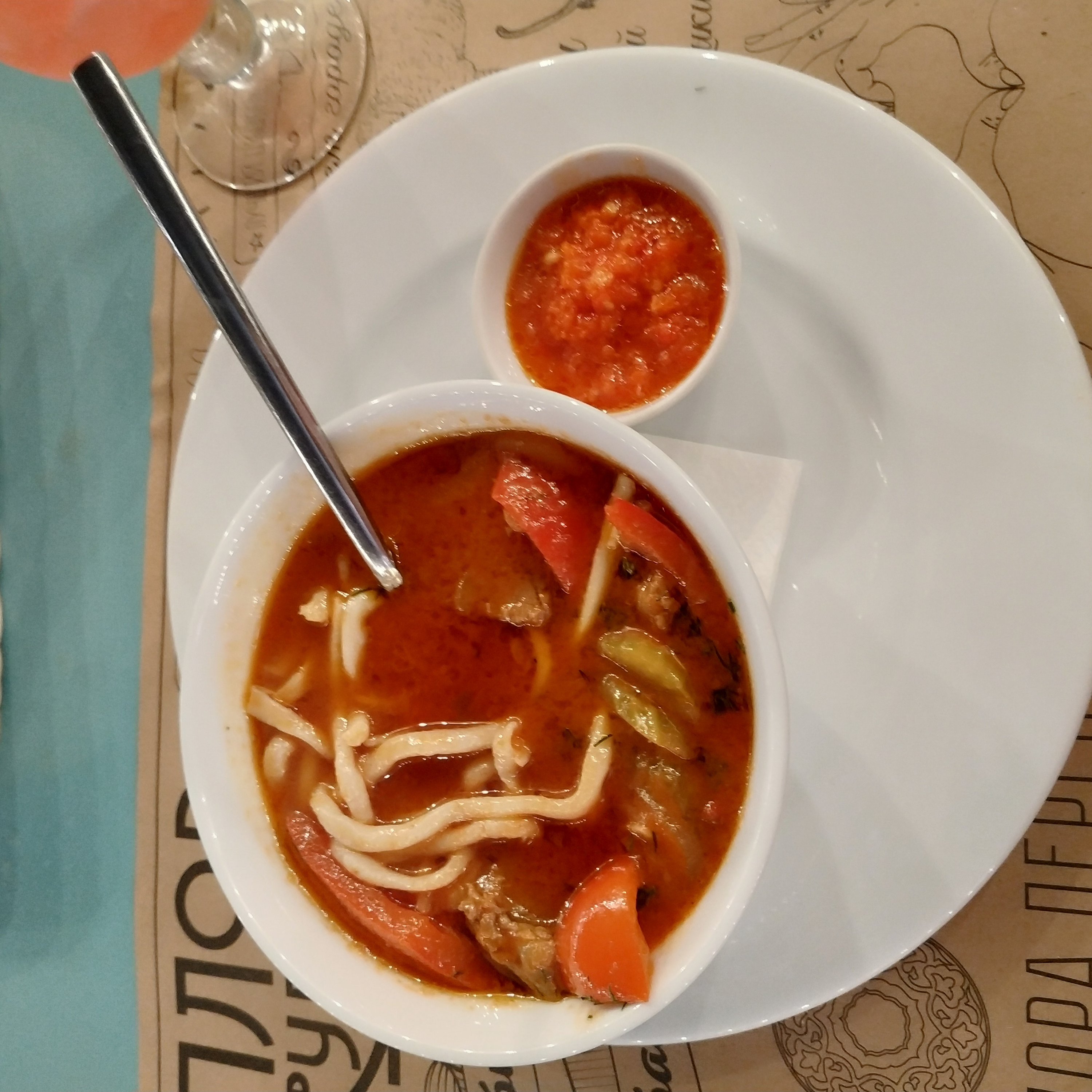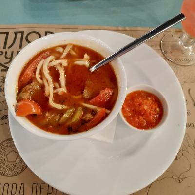 - При заказе навынос/доставку дополнительно оплачивается одноразовая посуда: контейнер для плова 0,28 руб, контейнер для соуса 0,12 руб, контейнер для супа 0,12 руб, ланч-бокс 0,16 руб, контейнер для суши маленький 0,37 руб, контейнер для суши большой 0,65 руб, упаковка для пиццы 0,45 руб.