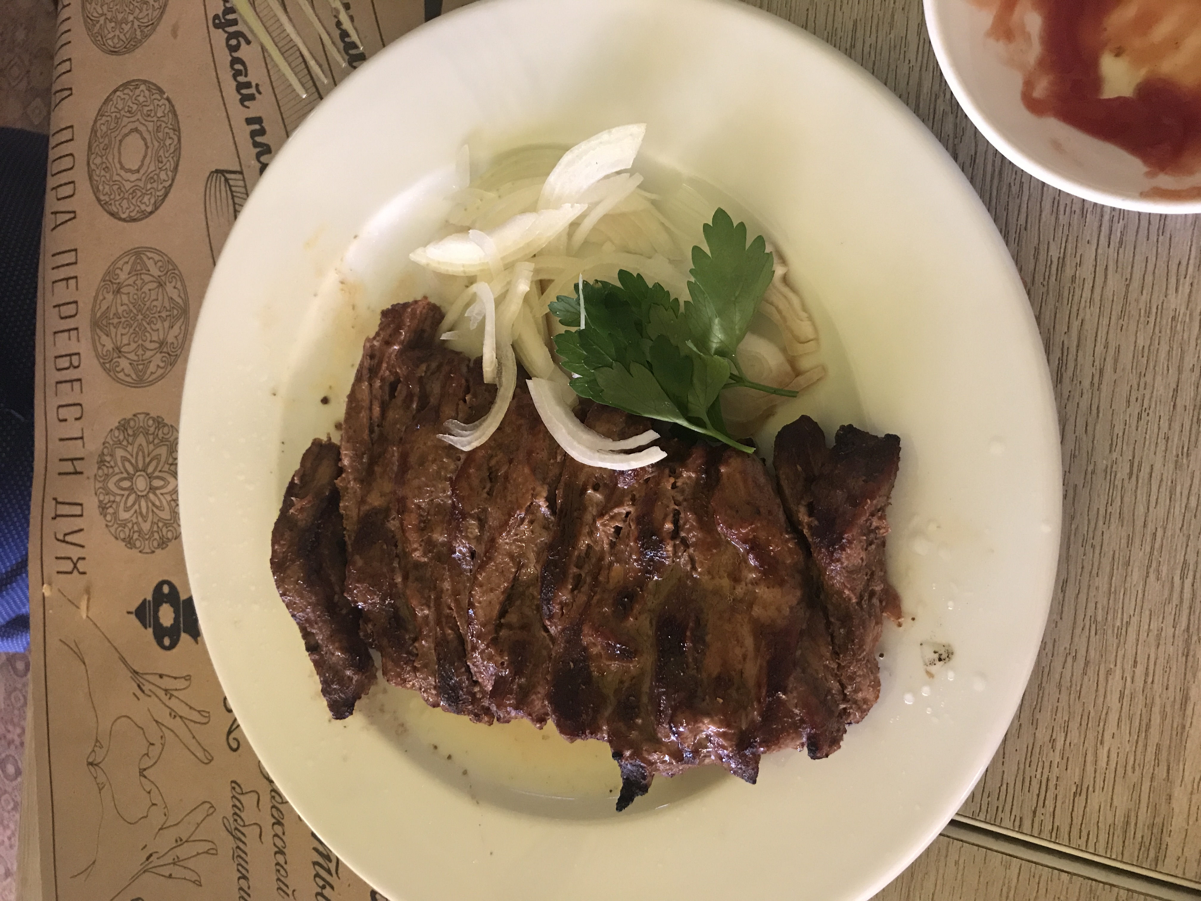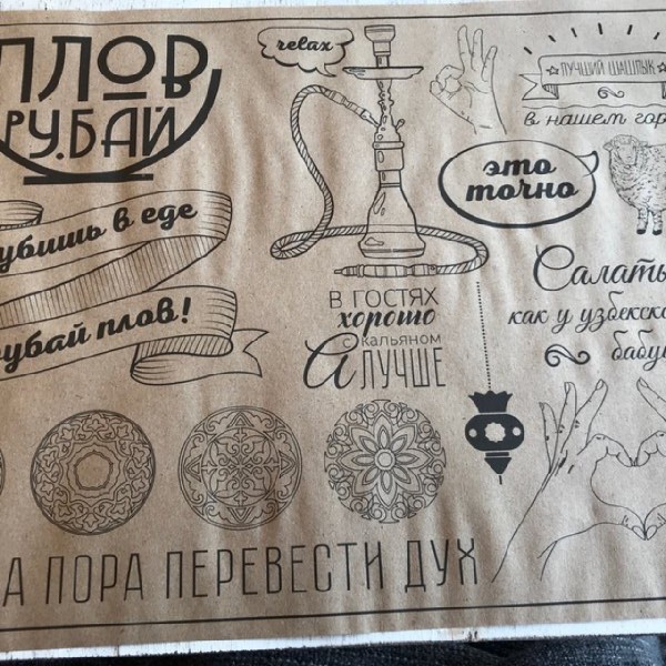 - При заказе навынос/доставку дополнительно оплачивается одноразовая посуда: контейнер для плова 0,28 руб, контейнер для соуса 0,12 руб, контейнер для супа 0,12 руб, ланч-бокс 0,16 руб, контейнер для суши маленький 0,37 руб, контейнер для суши большой 0,65 руб, упаковка для пиццы 0,45 руб.