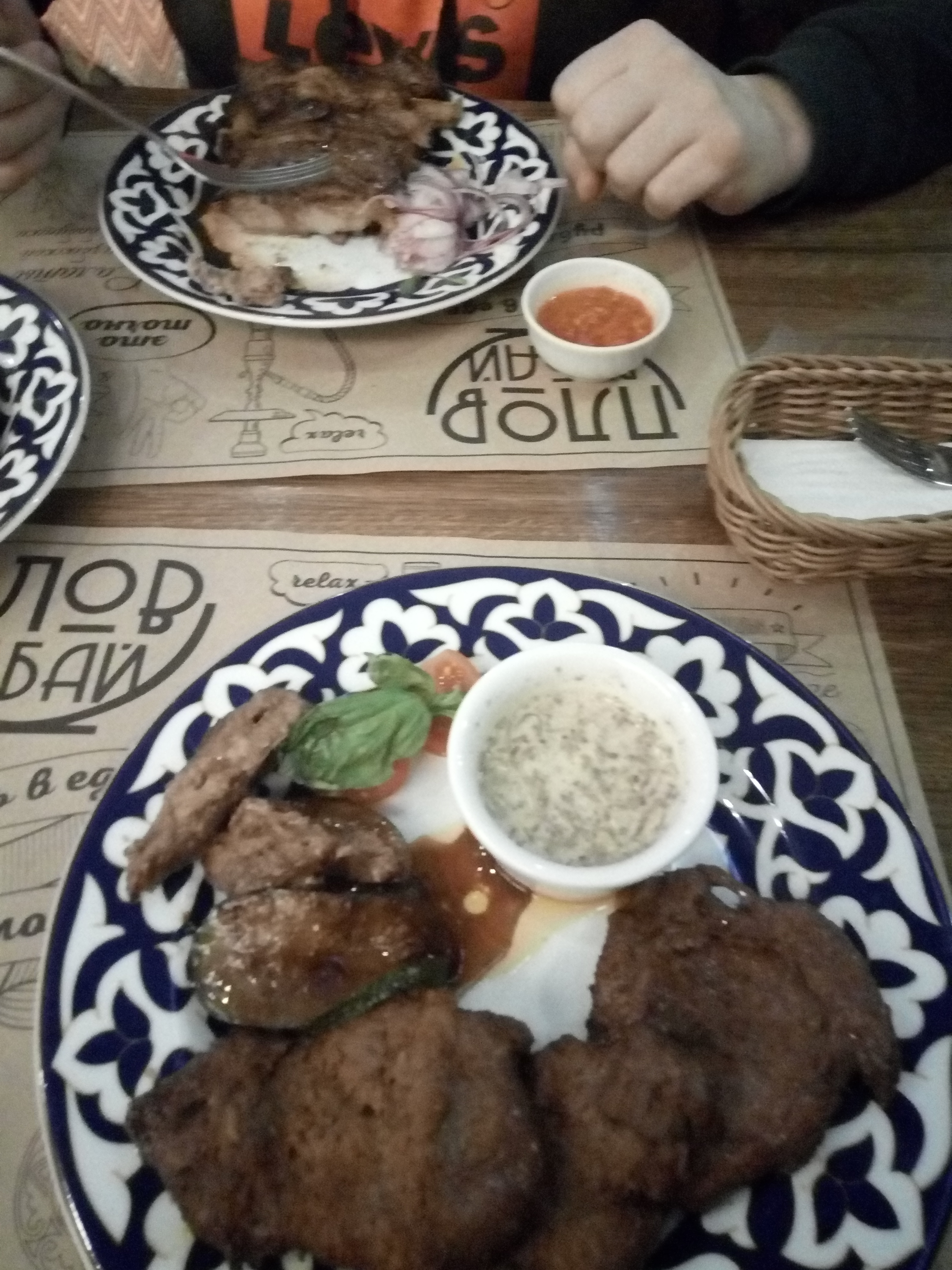 Опять у Милы на фото реклама. Чтобы так сфотографировать стол надо встать во весь рост. Где вилки, хлеб? А чебуреки и самса это национальные узбекские блюда и не уметь и не хотеть их говить узбекским поварам должно быть стыдно. Хотелось бы получить коментарий или извинения администрации. Я в свое время работал начальником цеха по производству кулинарной продукции в одном из гипермаркетов Минска, поваров в подчинении было 30 человек, 6 мастеров и 2 технолога поэтому могу дать объективный отзыв. Надо стремится, чтобы Ваши чебуреки и самса были недорогими и самыми вкусными в городе. Тогда за счет оборота будет загружен зал и прибыль будет.