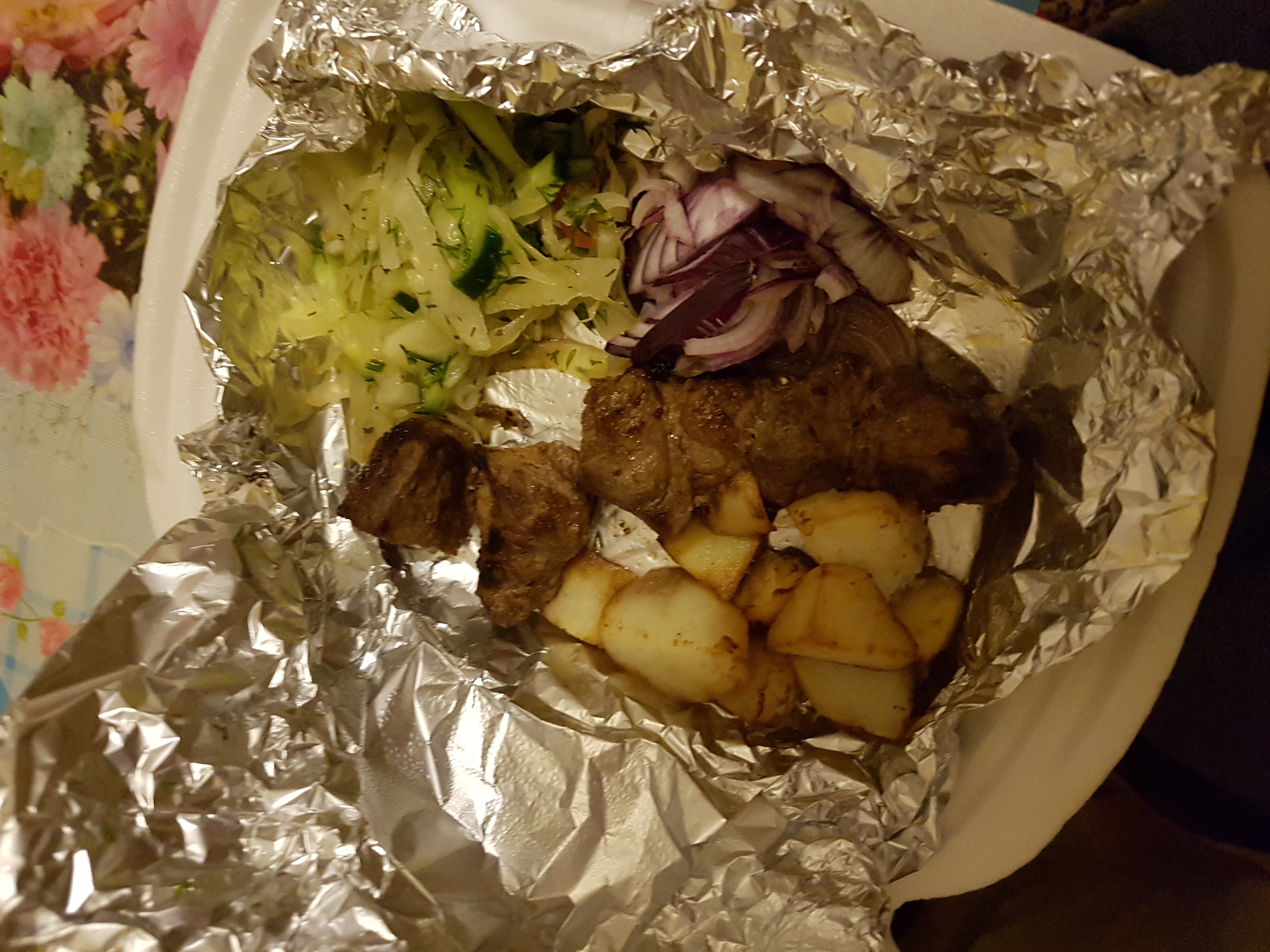 Делал заказ на вынос бара6ину по кавказски. Хорошая порция с картошкой и салатом. Очень вкусные соусы можно взять в дополнение к мясу. Рекомендую томатный, готовят сами. Вежливое обслуживание, на вынос все все готово к огрворенному времени.