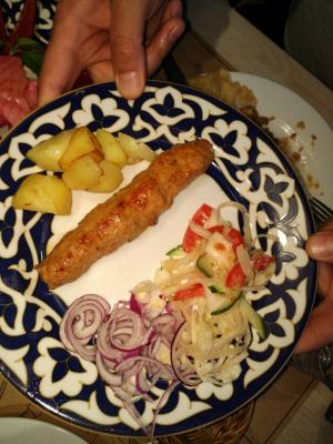 Одно из немногих мест, где подают нормальные, большие порции, а не нечто, что даже на перекус не годится. Все вкусно, сытно, цены даже без скидок более, чем адекватные, учитывая, что большинство блюд мясные и порции большие. 2-ух блюд с лихвой хватает, чтобы плотно наестся. Привычные к мелким порциям в наших кафе заказали по 3 блюда на человека, но... еле-еле осилили))) Очень приятное заведение с очень вкусной кухней. На двоих с напитками отдали всего 30р.
