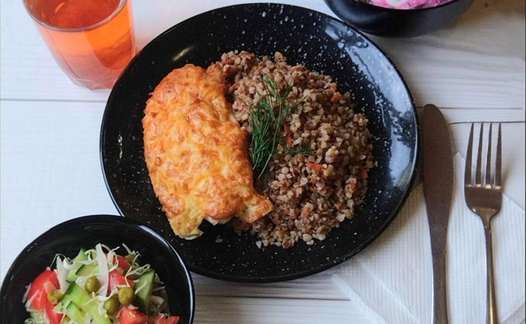 - №3 "Салат из овощей + борщ + куриное филе в сыре + каша гречневая + напиток фруктовый" (950 г): 10,90 р. 15,30 р.