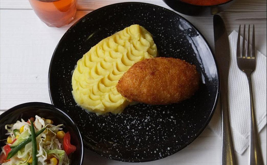 - №1 "Салат овощной с капустой + борщ + котлета папараць-кветка + пюре картофельное с укропом + напиток фруктовый" (950 г): 10,90 р. 15,30 р.