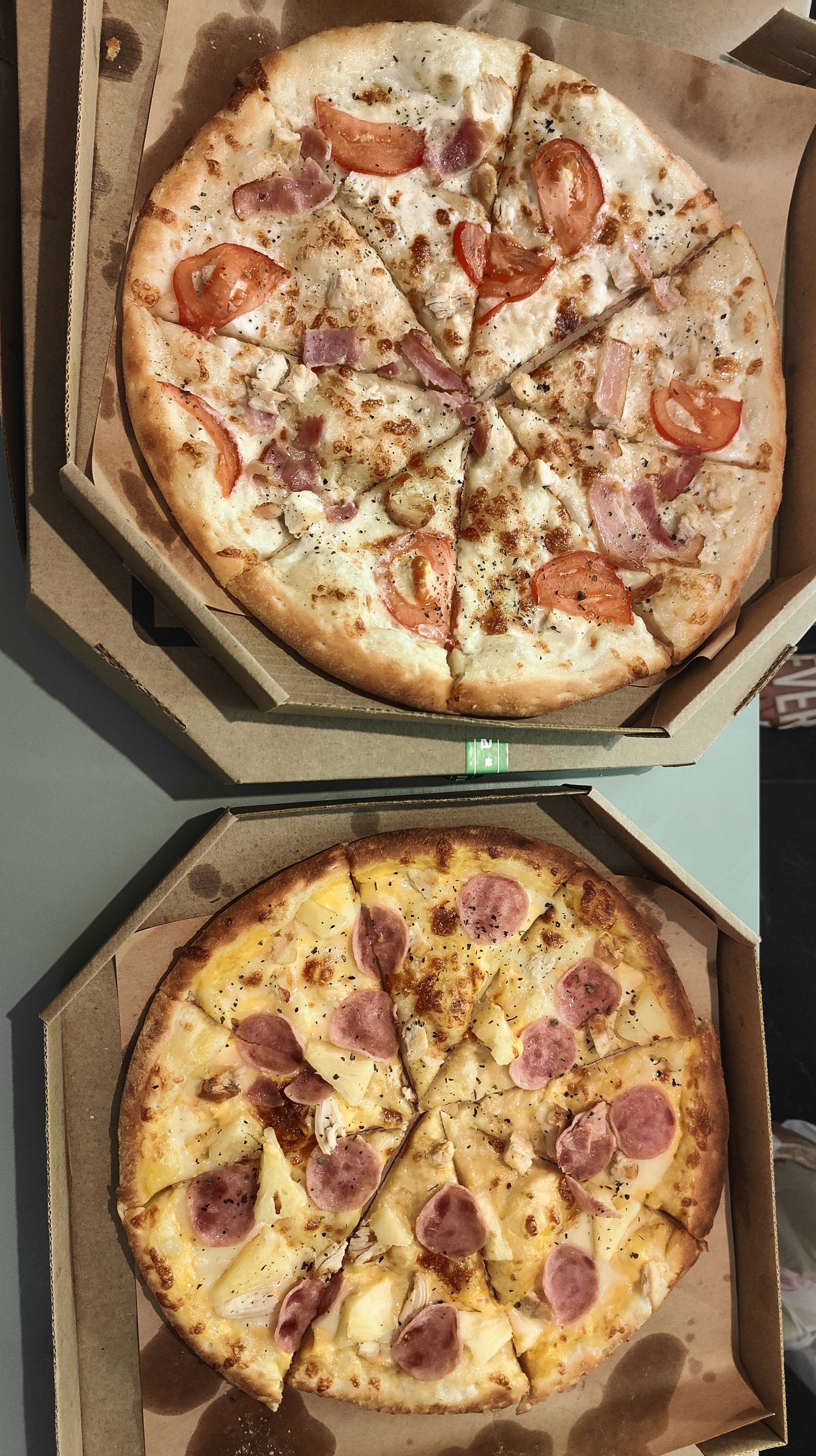 Отлично постарались в самый загруженный пятничный вечер! Заказывали 5 пицц, все было вкусно, особенно отличились: «Колбаски-гриль», «Пикантную» и «Шредер». Все приехали вовремя, были ароматными и очень вкусными. Спасибо, выручили! Обязательно повторим 👍