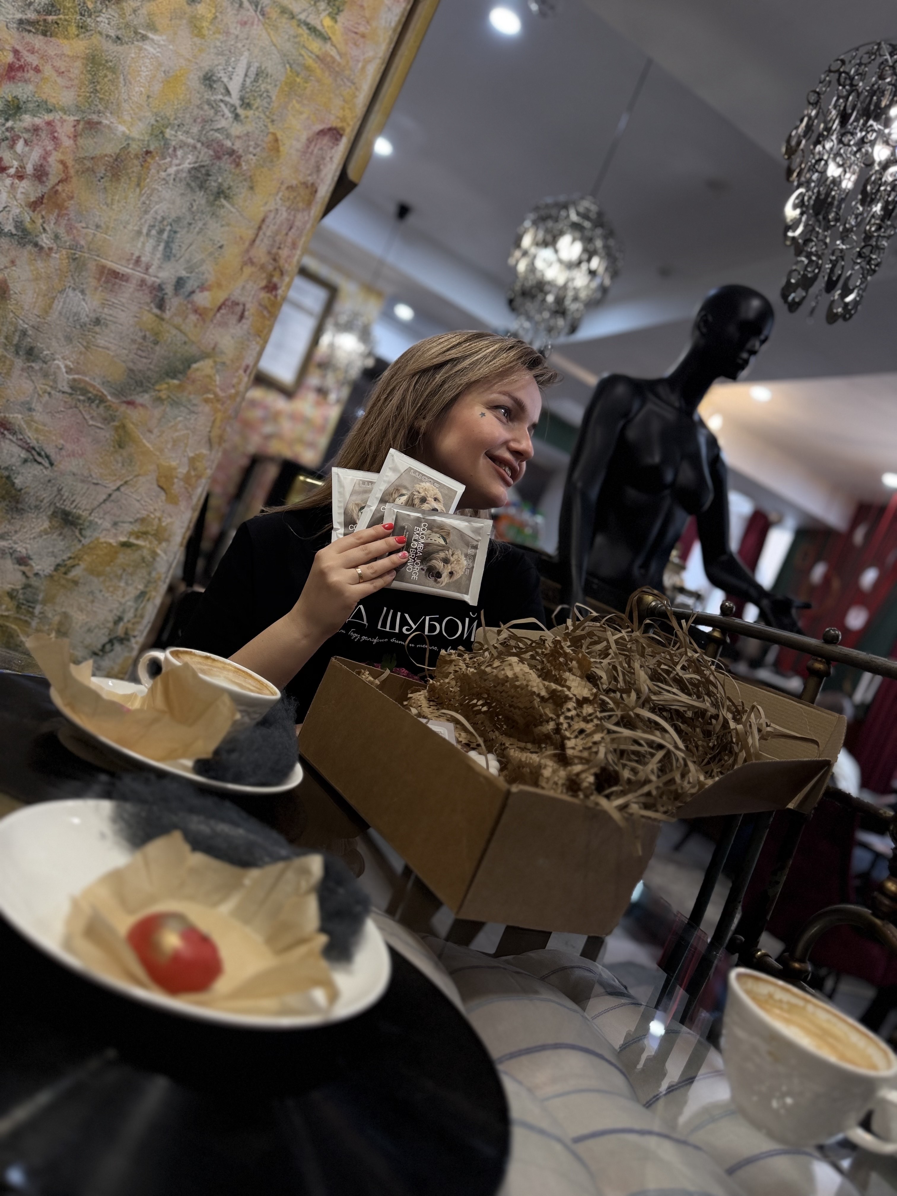 Спасибо большое ! Нам все очень понравилось. Сет замечательный, обслуживание приятное. Рассказали романтичную историю десерта. Если будете с 20 до 21 дополнительно подарят имбирного человечка. Нам подарили. Тоже вкусный. Брали также эстерхази и пьяную вишню. Вкусно и необычно. Кафе интересно оформлено, стильно, атмосферно. Рассматривали каждую деталь. Мы были дважды: сначала вдвоем, потом со взрослыми детьми и обязательно придем еще.