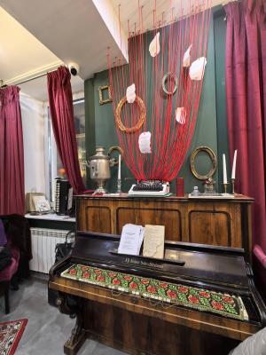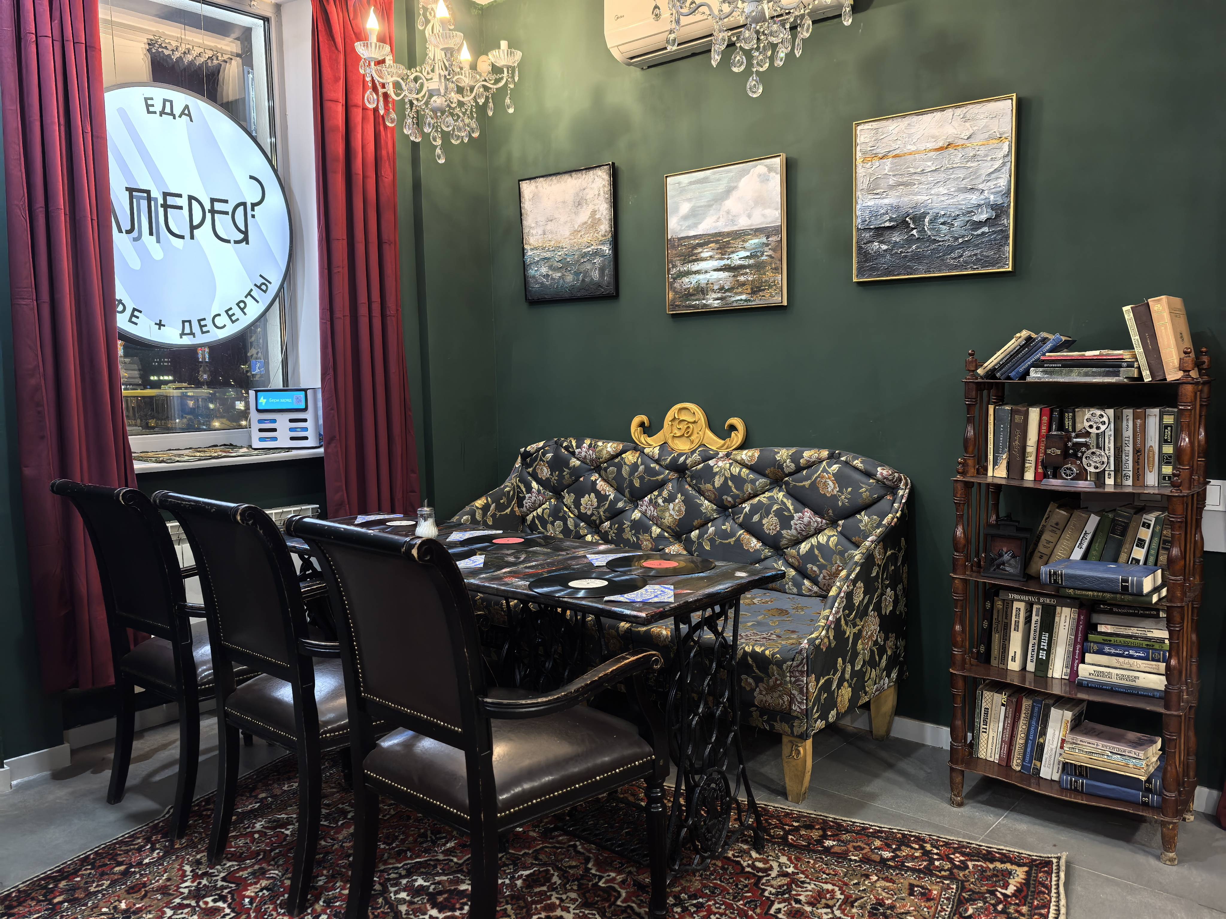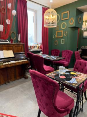 Не ожидала, что прямо в центре города можно найти такое чудесное место, потрясающий интерьер с множеством интересных деталей, хочется посидеть в разных местах, чтобы ничего не упустить. Приветливые и заботливые официанты. Меренговый рулет оказался 10/10, сливочно-пломбирный вкус крема с освежающей кислинкой натуральной вишни дополняются ореховыми слайсами, идеально к кофе. Обязательно приду снова за сетом