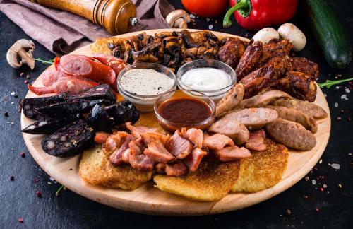 Довольно уютное для большого пространства место. Брали два сета (мясной и с драниками) на пробу. С драниками понравился больше из-за разнообразия выбора, но это дело вкуса. Само мясо было хорошим. Особенно понравились грибочки, они редко бывают вкусными (часто пресные). По еде все хорошо, а вот марку безалкогольного пенного напитка лучше заменить, оно было ужасное (есть намного лучше у отечественного производителя). Но, оцениваю еду, поэтому 5 звезд.