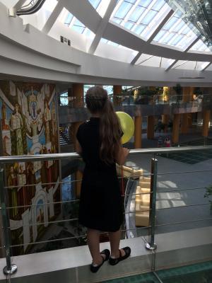 Затаив дыхание, Вы подниметесь на "7-е небо" Библиотеки - обзорную площадку - на панорамном лифте, где посетите художественную галерею.