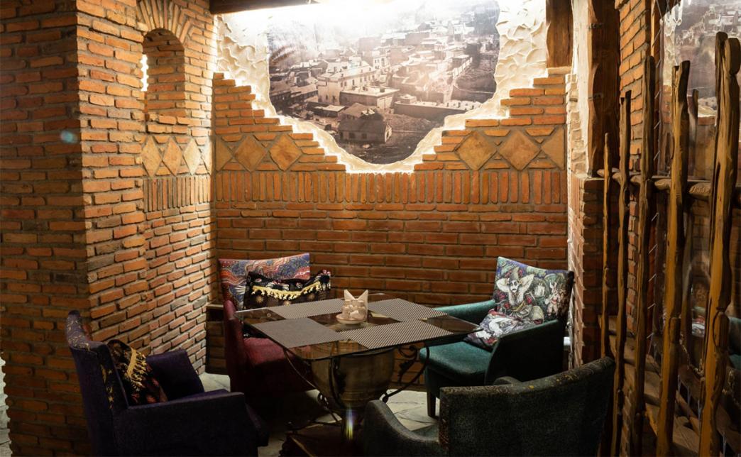 - Небольшое и уютное помещение с грузинским интерьером и настоящим камином