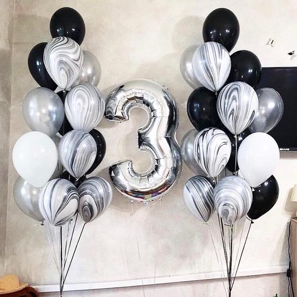 цифра + ультра-звезда + 4 звезды + 1 агат + шар с конфетти + 8 шаров