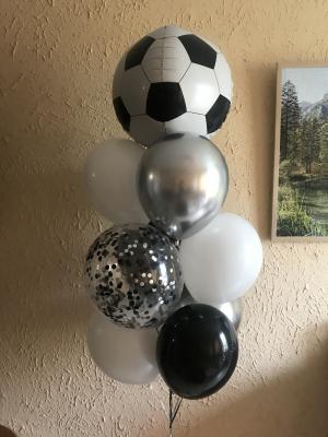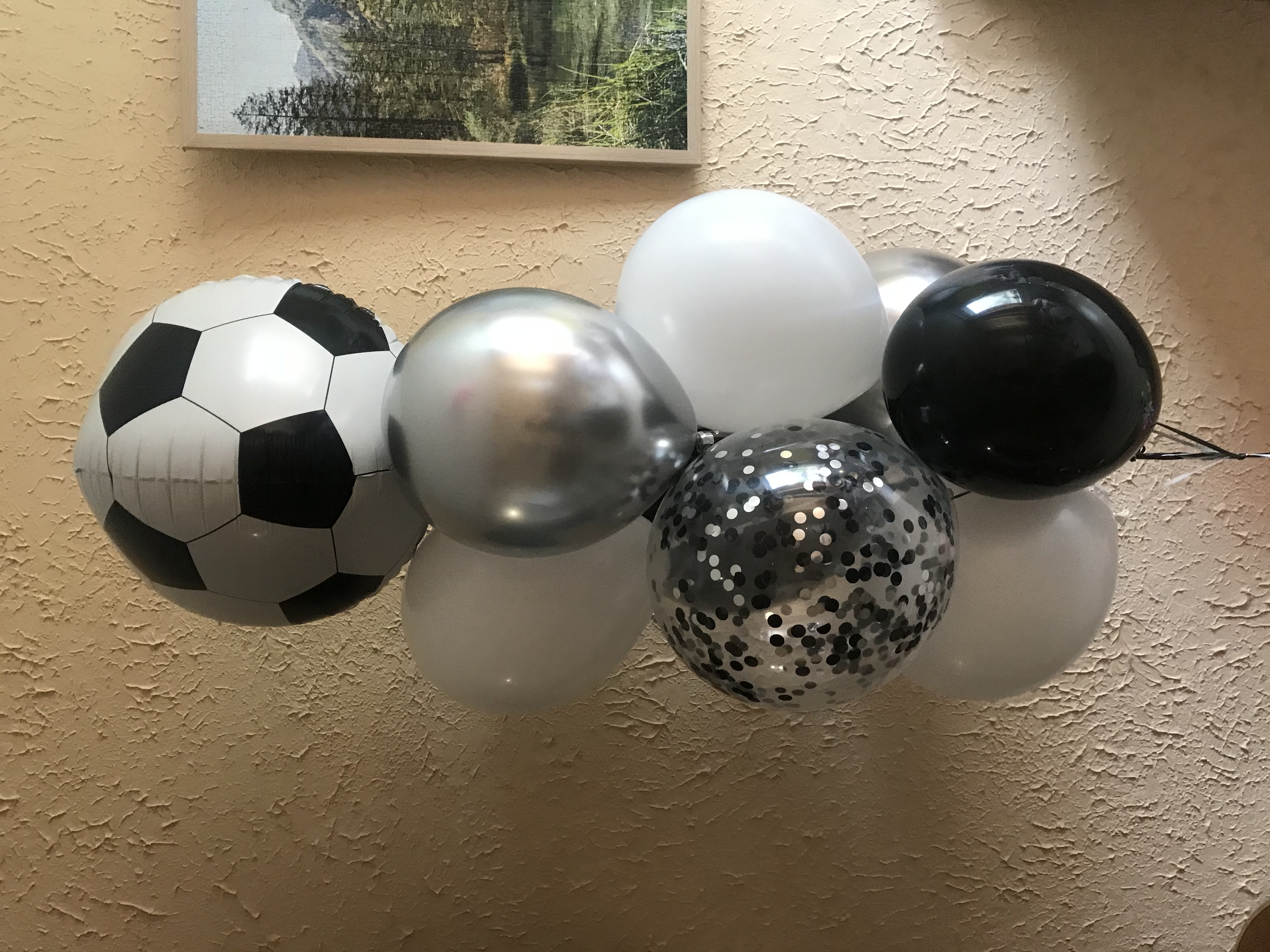 Вот такой вариант связки шаров для любителей футбола. Стильно, красиво и со вкусом!