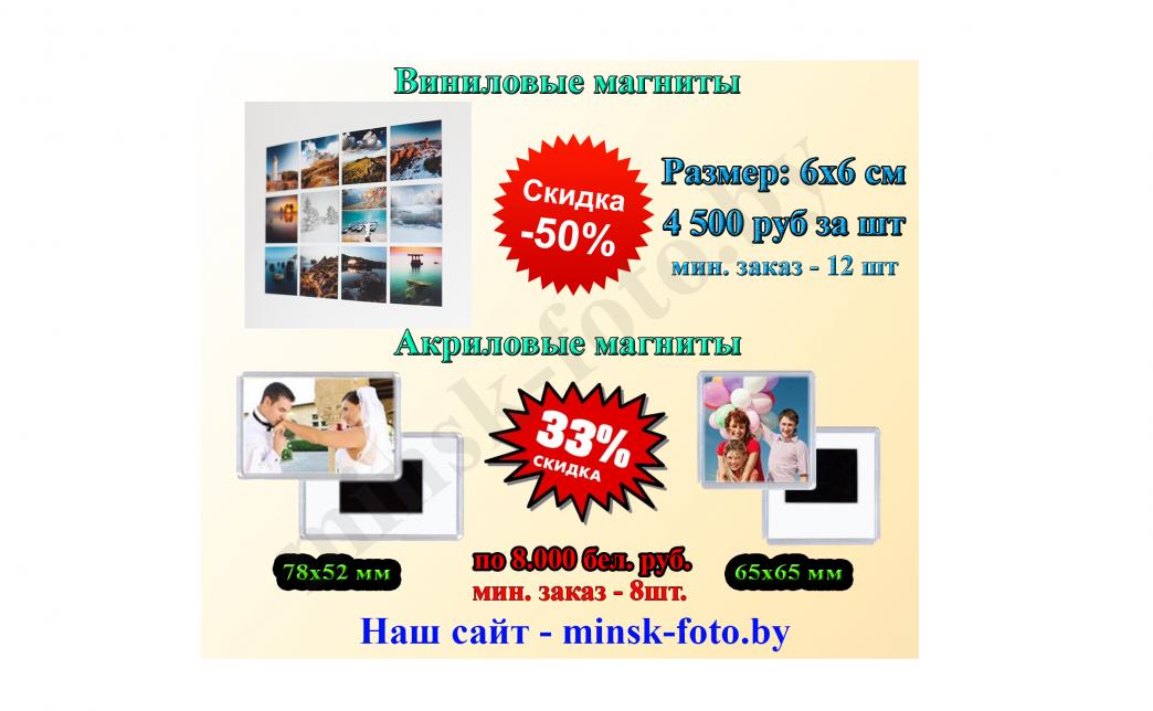- Акриловые магниты (65х65 мм или 78х52 мм):