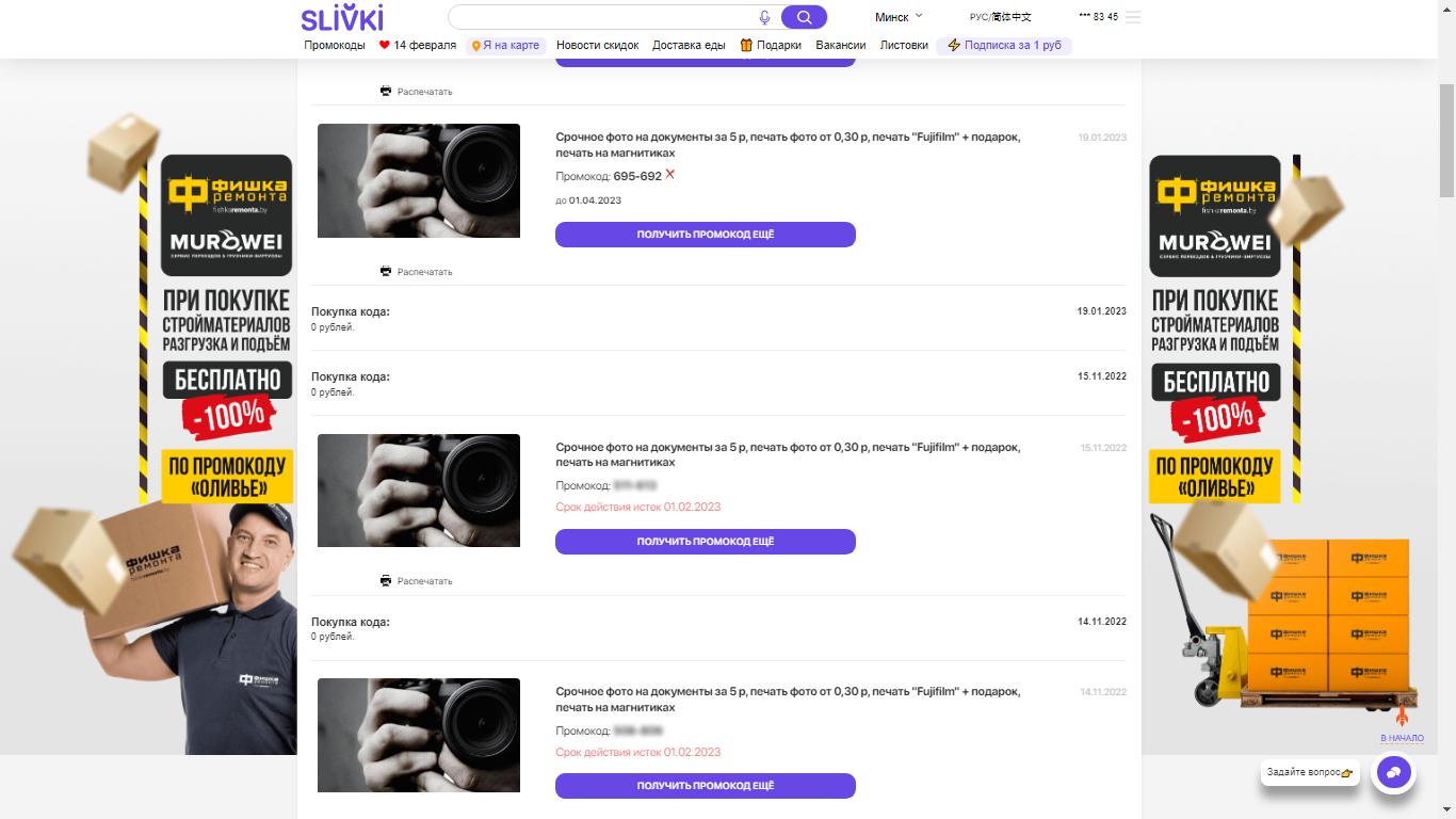 - Промокод дает право на скидку до 65% на срочное фото, фотопечать, печать текста