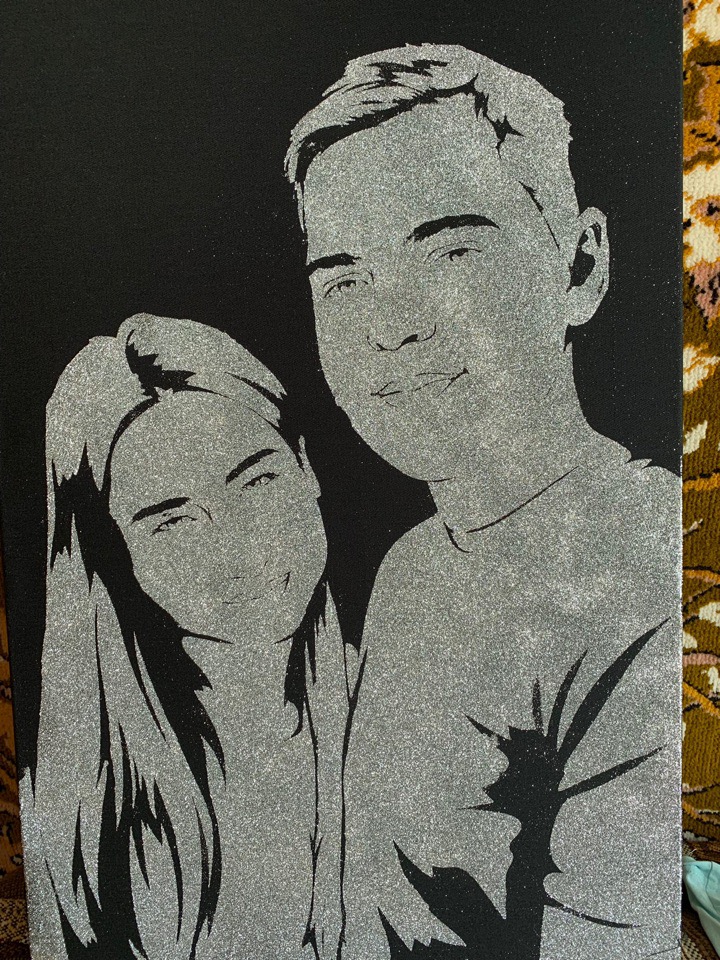 Покупала на свадьбу брату. В комплекте была кисточка и гости подумали что это молодые сами красоту такую нарисовали. Когда обсыпали пыль все остались в восторге. Картина хорошо упакована в кравтовую бумагу. Заказом очень довольна. При оформлении заказа менеджер Роман несколько раз форматировал лица) осталась довольна. Редко пишу отзывы, но это безупречная работа. Единственный минус это нет достпвки)